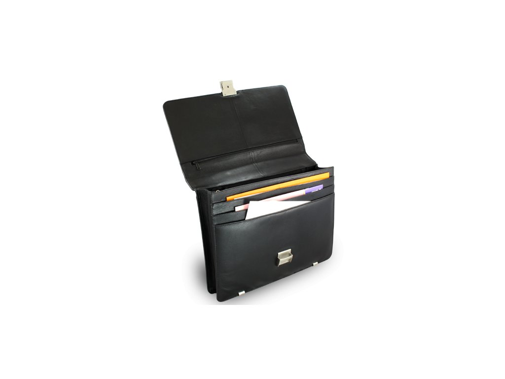 1 větší vnitřní separace, 2 zipové kapsy, vnitřní kapsičky na 4 kreditní karty (vizitky) a 2 kapsy na doklady, 3 kapsy na dokumenty, ochrana spodních hran.