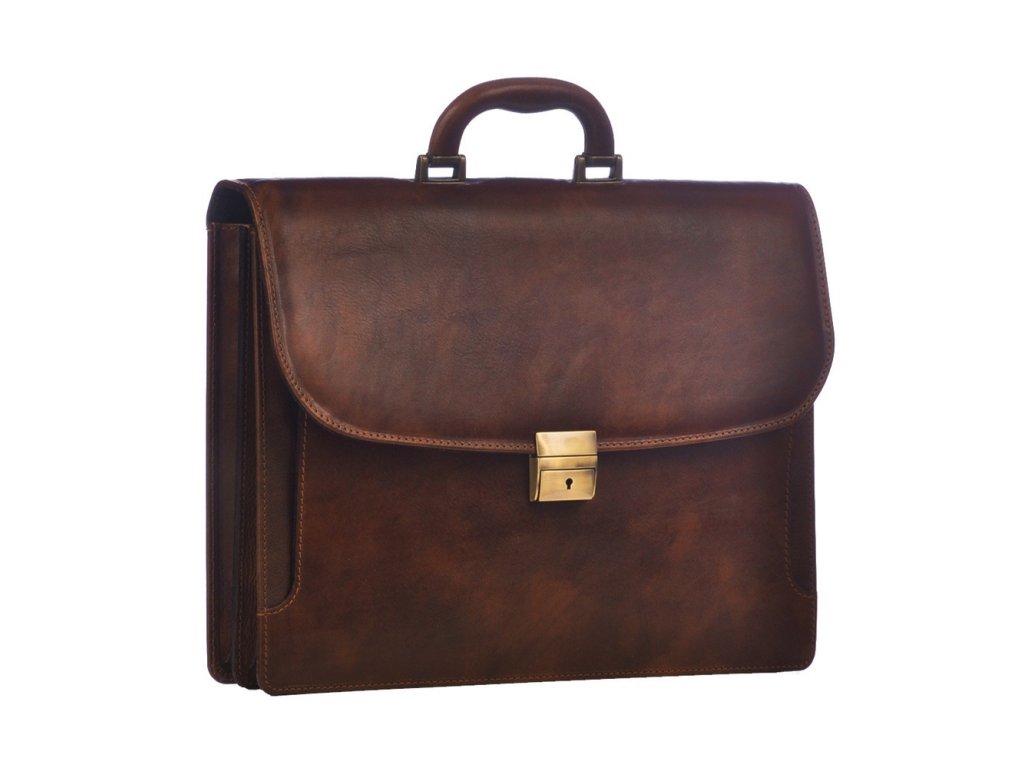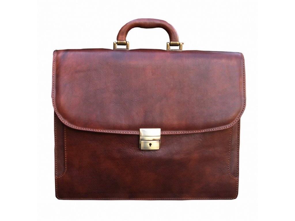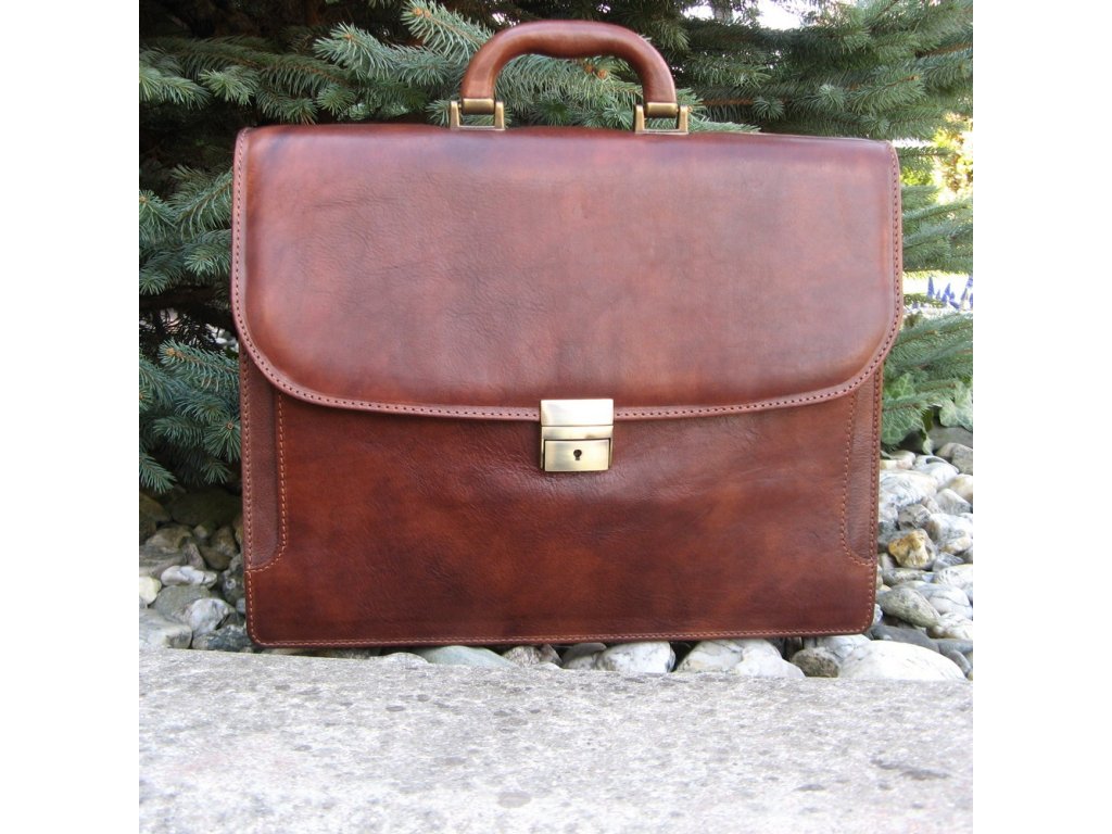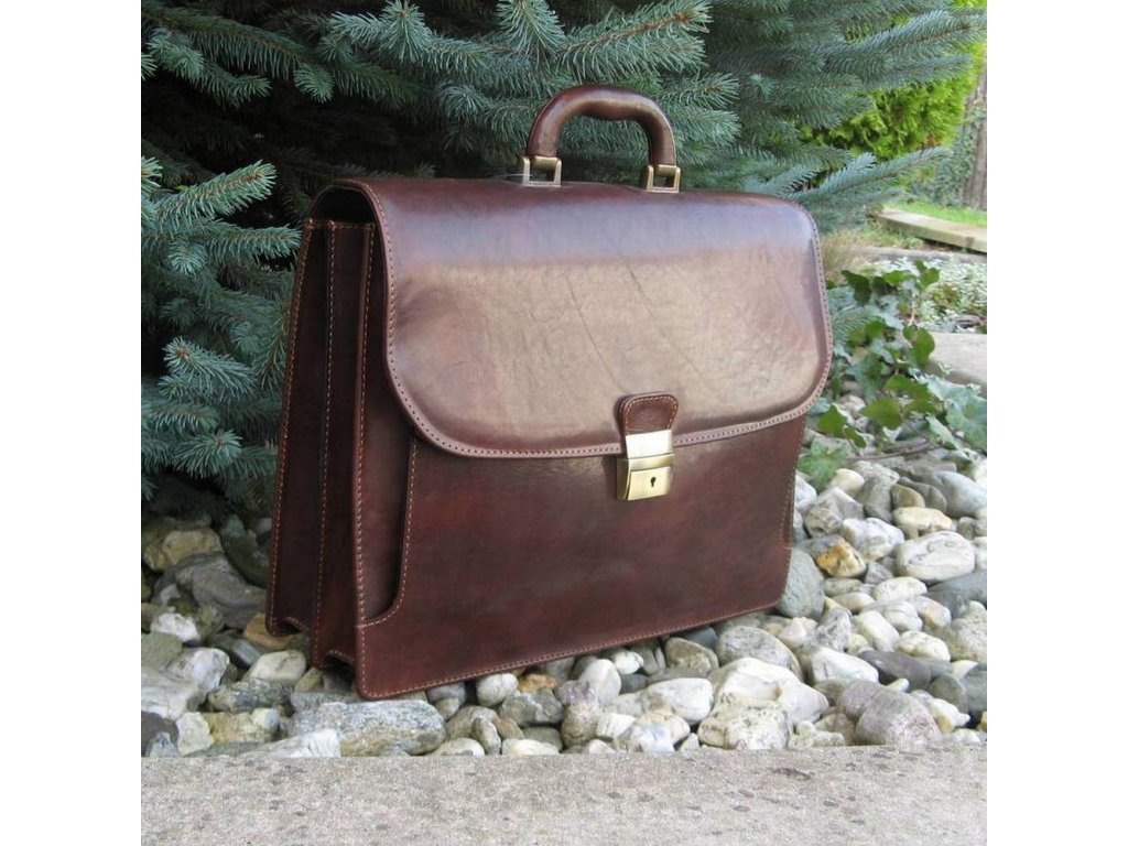 Kožená ručně šitá aktovka DAVID - česká výroba; hnědá