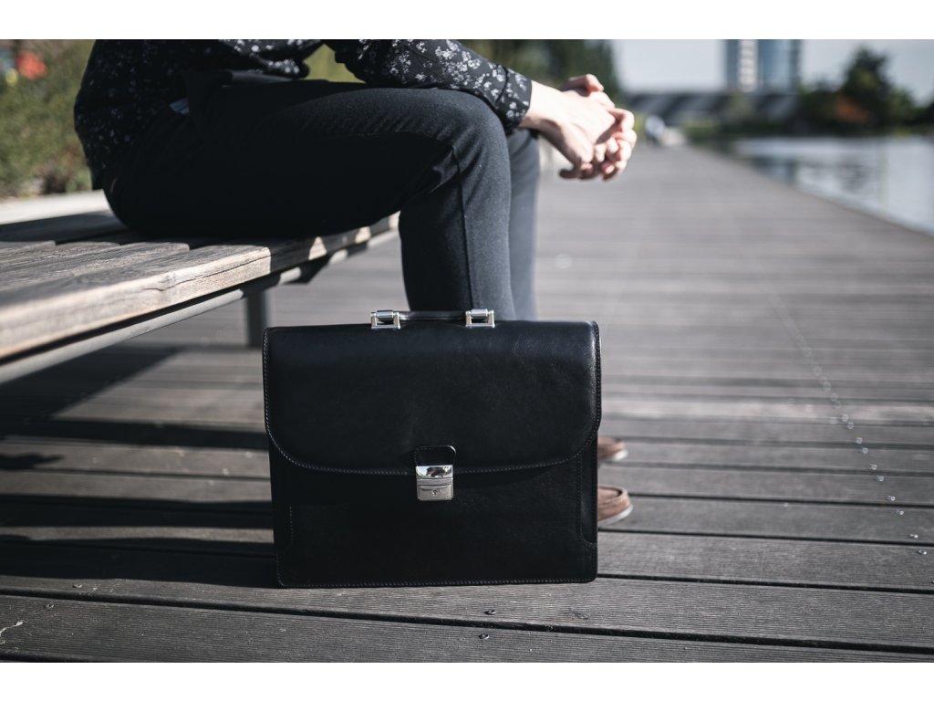 Větší aktovka z hovězinové usně , uvnitř 2 větší oddělení a uzavíratelná kapsa na dokumenty A4 , přední prostorná kapsa ve které je kapsička na drobnosti, poutka na tužky, držadlo tvarované pro nejlepší možné uchopení . Řemen přes rameno na přání ( + 230 Kč ) .