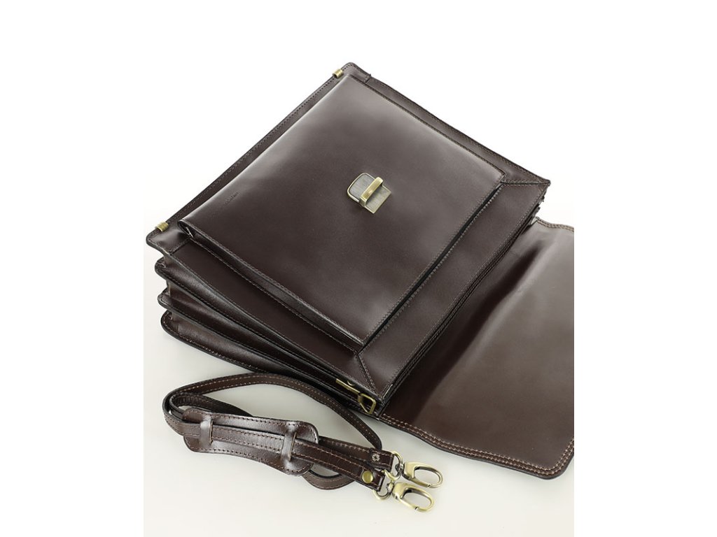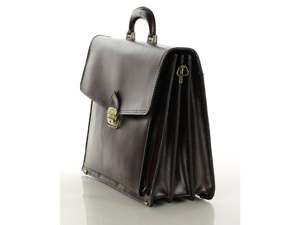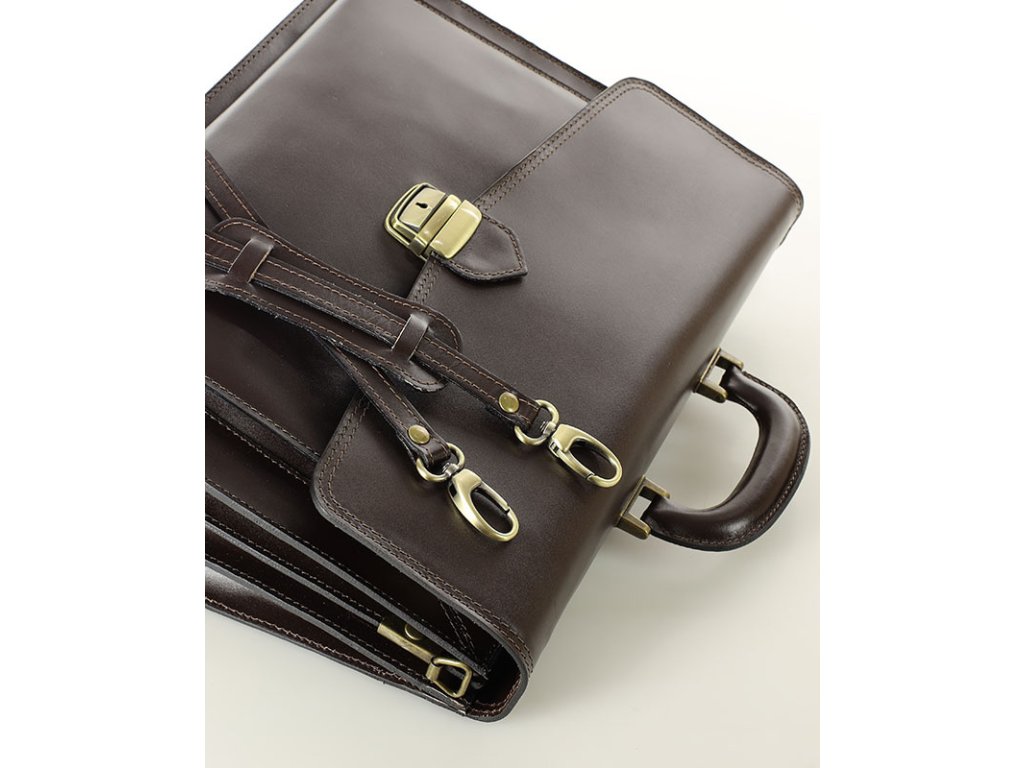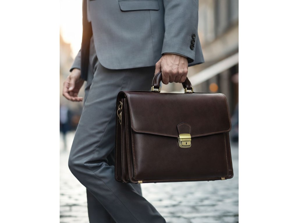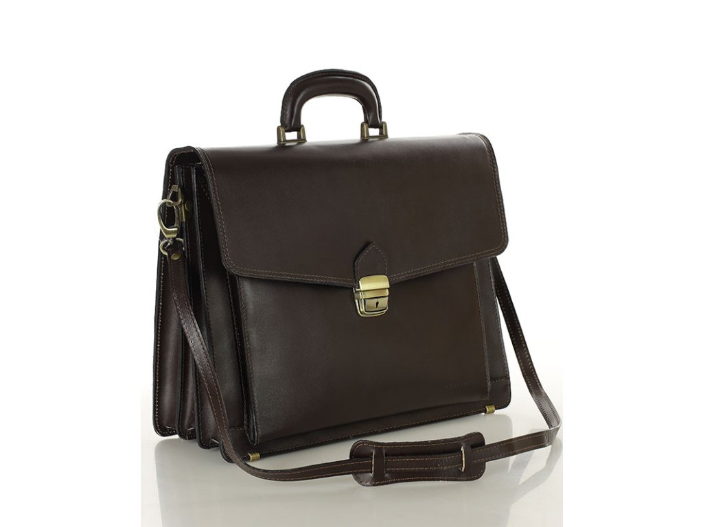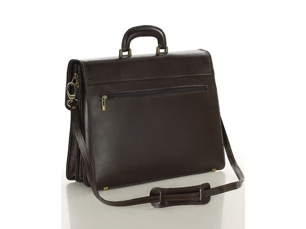 Tato kožená aktovka byla navržena pro maximální funkčnost a praktičnost. Nabízí řadu užitečných přihrádek a kapes, které vám pomohou uspořádat dokumenty, notebook, pera, kreditní karty a další drobnosti. Díky tomu budete mít vždy vše, co potřebujete, po ruce. Kožená aktovka má tři přihrádky a další velkou přední přihrádku s organizérem na karty a pera. Zadní strana modelu navíc nabízí prostornou kapsu na zip. Pevný zámek s klíčovým zámkem, nožičky chránící spodní část aktovky před poškozením a pohodlné ucho s mosazným kováním jsou prvky, které zajišťují pohodlí a praktičnost při každodenním používání. Díky speciálnímu popruhu lze tento model nosit v ruce nebo přes rameno.