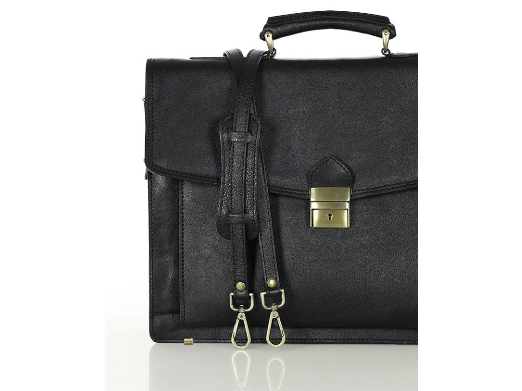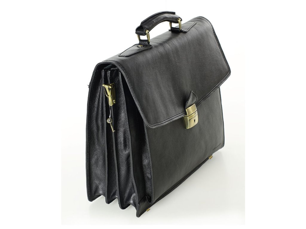 Vyrobeno z telecí kůže. Ideální pro práci nebo výlety. Uzamykatelná na silný zámek s klíčem. Uvnitř jsou dvě prostorné komory oddělené na zip a místem pro praktické kancelářské doplňky. Pojme formát A4. Dvě kapsy: otevřené pod klopnou a zavírací na zadní straně. Interiér je vyztužen. Dno je zajištěno kovovými ochrannými nohami. Zahrnuje dlouhý ramenní popruh s háčky. Chromované kování.