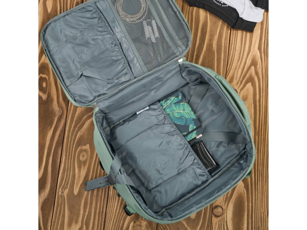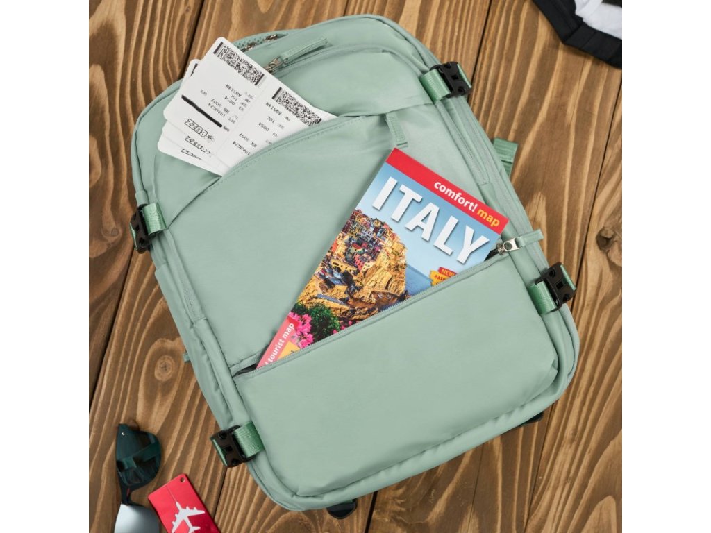 Waterproof – plecak został wyposażony w specjalną, wodoodporną komorę, która stanowi niezawodną ochronę w każdych warunkach. Dzięki szczelnej powłoce jej zawartość pozostaje bezpieczna nawet podczas niespodziewanej ulewy. To praktyczne rozwiązanie sprawdza się także na co dzień – jeśli przypadkiem włożysz do niej niedokręconą butelkę z wodą czy mokry ręcznik po treningu, reszta rzeczy w plecaku pozostanie nienaruszona. Wodoodporna komora to gwarancja komfortu i spokoju – niezależnie od tego, czy jesteś w drodze do pracy, na uczelnię, czy wybierasz się w dłuższą podróż. Dwukomorowa konstrukcja – główna przegroda oraz dodatkowa komora (łącznie 2) to pewność idealnego zorganizowania bagażu; 11 kieszeni pomieści wszystkie niezbędne drobiazgi. - W pierwszej komorze pomieścisz swoją garderobę oraz pozostałe akcesoria. Całość ustabilizujesz pasami spinającymi, które tym samym wpłyną na znaczną oszczędność miejsca oraz objętości. - Druga komora została wyposażona w dedykowaną przegrodę z pianką dystansującą – to bezpieczne miejsca na Twojego laptopa (15,6″) oraz teczkę z dokumentami w formacie A4 Lekki, ale wytrzymały – waży zaledwie 1 kg, co wraz z możliwością rozszerzenia pojemności, pozwala na zabranie wszystkiego, co niezbędne – bez obciążania. Ergonomiczne wsparcie – plecak wyposażono w wzmocnione szelki i pas nośny, wzmacniane pasy wewnętrzne oraz tylne poduszki zapewniające wentylację i komfort noszenia, także przy dłuższych trasach. Innowacyjny uchwyt – tylny pas nośny umożliwia szybkie i pewne przeniesienie plecaka między torbą a walizką podczas przesiadek; pozwala również na wygodne zamocowanie go na uchwycie bagażu na kółkach. Elastyczne troczki i możliwość rozbudowy – troczki pozwalają na dopasowanie i dociągnięcie zawartości, a konstrukcja plecaka jest zaplanowana z myślą o przyszłym rozszerzeniu pojemności. Minimalistyczna elegancja – design w pełni funkcjonalny, dyskretny i stylowy, idealny zarówno na city break, jak i dłuższy wyjazd bądź lot służbowy. Linie lotnicze akceptujące 40 × 30 × 20 cm jako bezpłatny bagaż podręczny Ryanair – wprowadził właśnie wymiar 40 × 30 20 cm jako darmowy mały bagaż osobisty, zastępując wcześniejsze 40 × 25 × 20 cm – oznacza to wzrost pojemności o ok. 20% Wizz Air, Vueling, Transavia, Volotea – również stosują limit 40 × 30 × 20 cm dla małego bagażu podręcznego wliczanego w cenę biletu Podsumowanie kluczowych informacji: Kieszenie/Komory – 11 kieszeni, 2 komory w tym na laptop (15,6″) Ergonomia – wzmocnione szelki szelki, pasy, wentylowane poduszki, dodatkowy pas nośny Wodoodporność - Cała konstrukcja uszczelniona powłoką wodoodporną Waga/rozmiar - 1 kg; 40 × 30 × 20 cm (idealne do kabiny) Linie Lotnicze - Ryanair, Wizz Air, Vueling, Transavia, Volotea akceptują ten wymiar bez dopłat Definicja jakości Paolo Peruzzi – ten plecak to kwintesencja filozofii marki, w której każdy detal ma znaczenie. Precyzyjne wykończenie, starannie dobrane materiały i nowoczesne rozwiązania sprawiają, że jest to model stworzony dla najbardziej wymagających użytkowników. To idealny towarzysz podróży – doskonale sprawdzi się jako bagaż podręczny w samolocie, ale równie wygodnie zabierzesz go w podróż pociągiem czy autokarem. Pojemność i funkcjonalny układ komór pozwalają zmieścić wszystkie niezbędne rzeczy, a ergonomiczna konstrukcja zapewnia komfort noszenia nawet przez wiele godzin. Jednak plecak Paolo Peruzzi to coś więcej niż praktyczny bagaż – to wierny kompan każdej przygody. Niezależnie od tego, czy wybierasz się na kilkudniową wycieczkę czy na spacer poza miastem, ten model gwarantuje wygodę, niezawodność i styl, który nigdy nie wychodzi z mody. Charakterystyka Model: AS-01-GB Materiał: Poliester Kolor: Zielony Liczba kieszeni: 11 Liczba komór: 2 Mieści format A4: Tak Przegroda na laptopa: Tak (15.6'') Waga: 1 kg Rodzaj uchwytów: Regulowane szelki, uchwyt do ręki, pas nośny Wymiary Wysokość: 40 cm Szerokość: 30 cm Głębokość: 20 cm