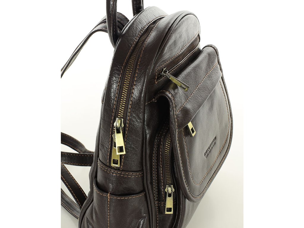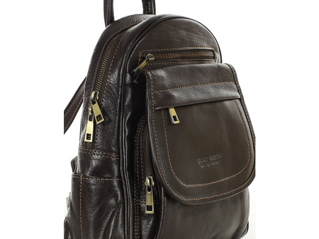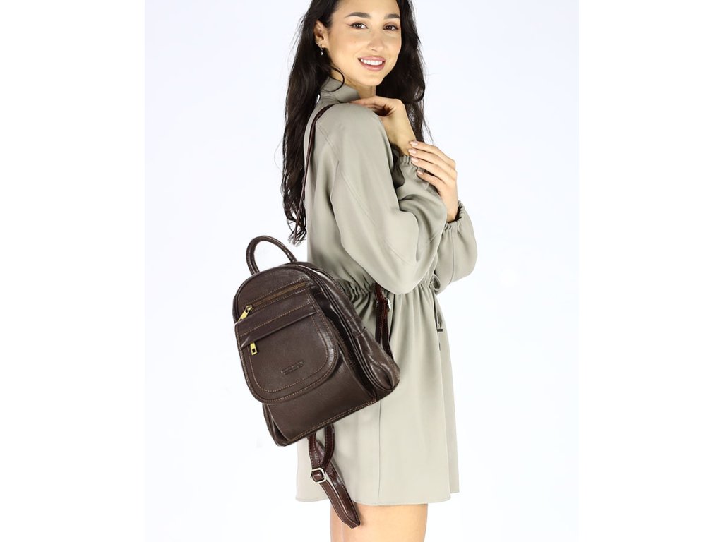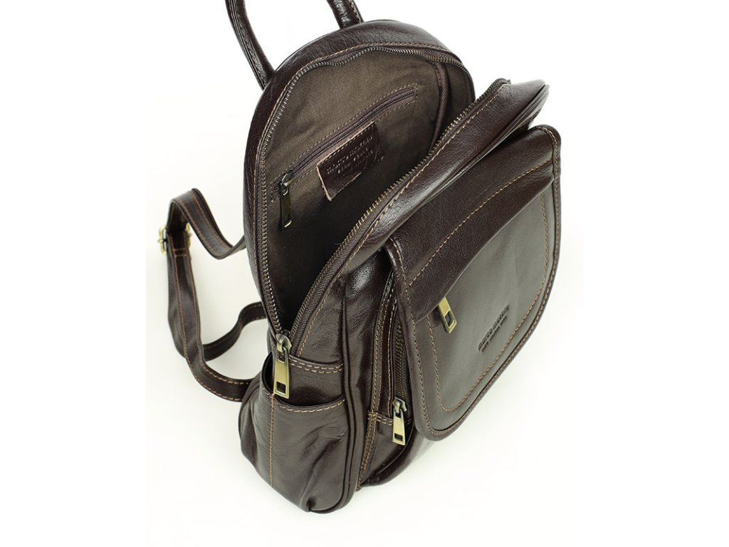 Dámský kožený batoh, perfektní organizace MAZZINI; hnědá