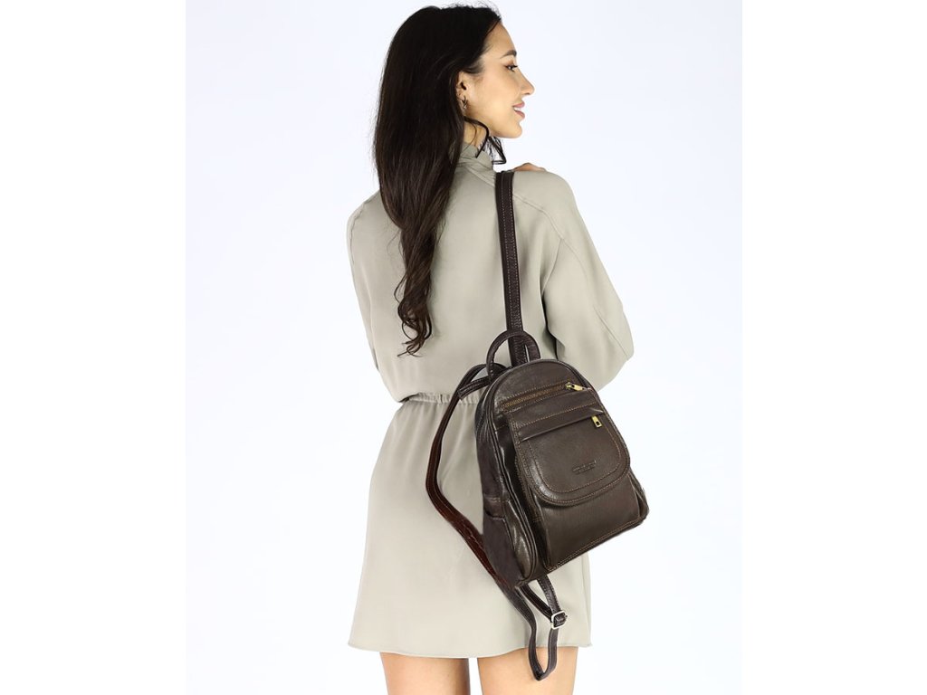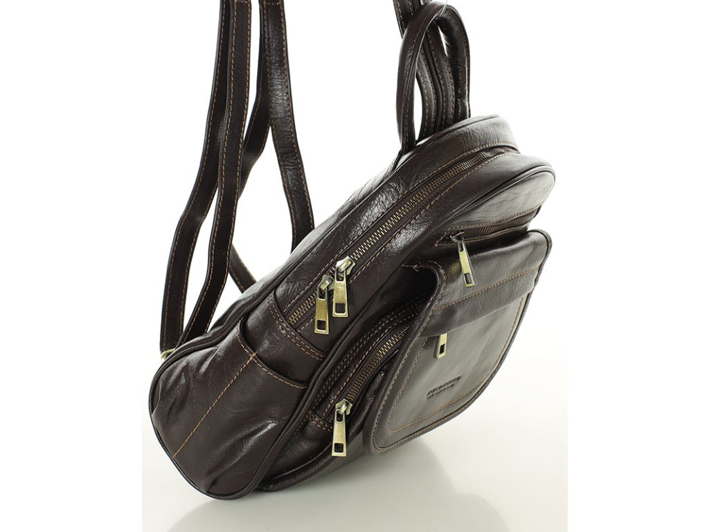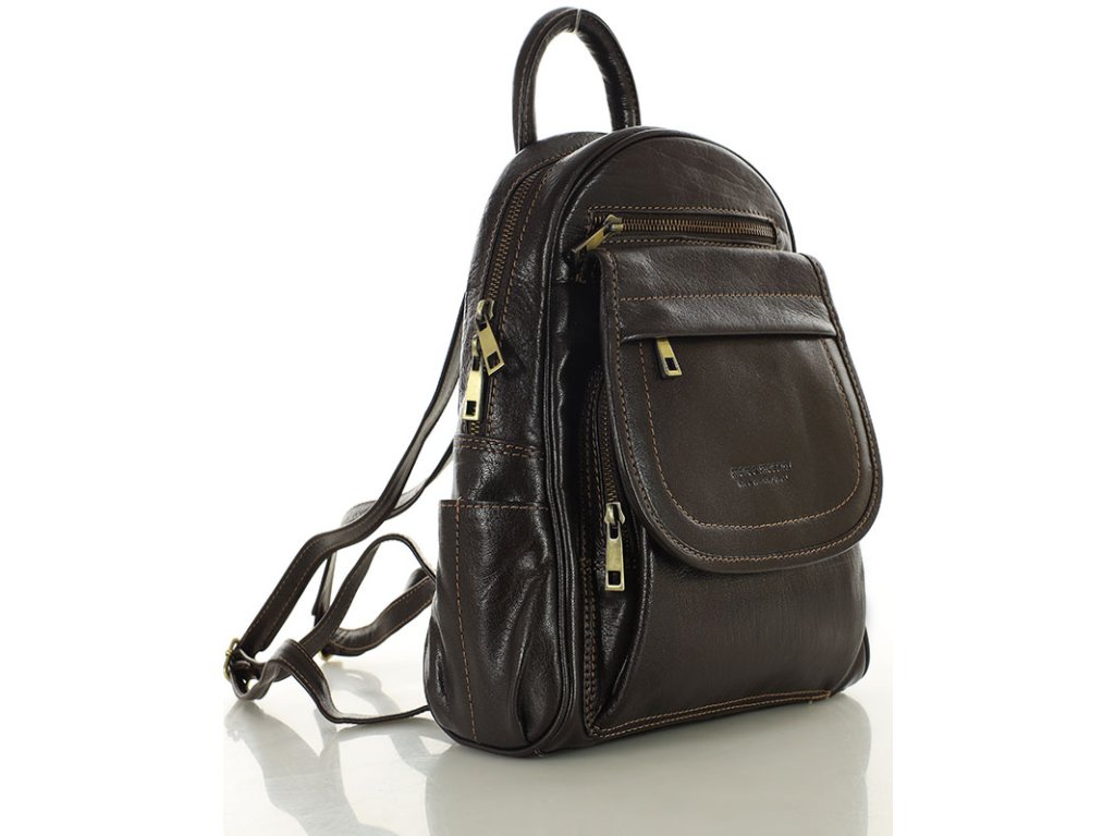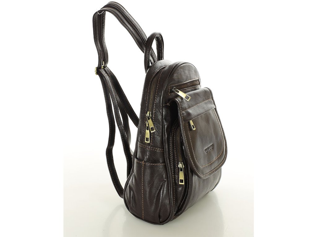 Dámský kožený batoh, perfektní organizace MAZZINI; hnědá