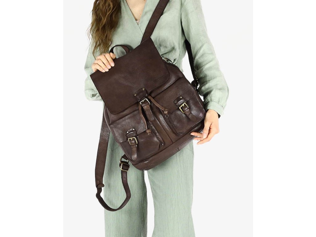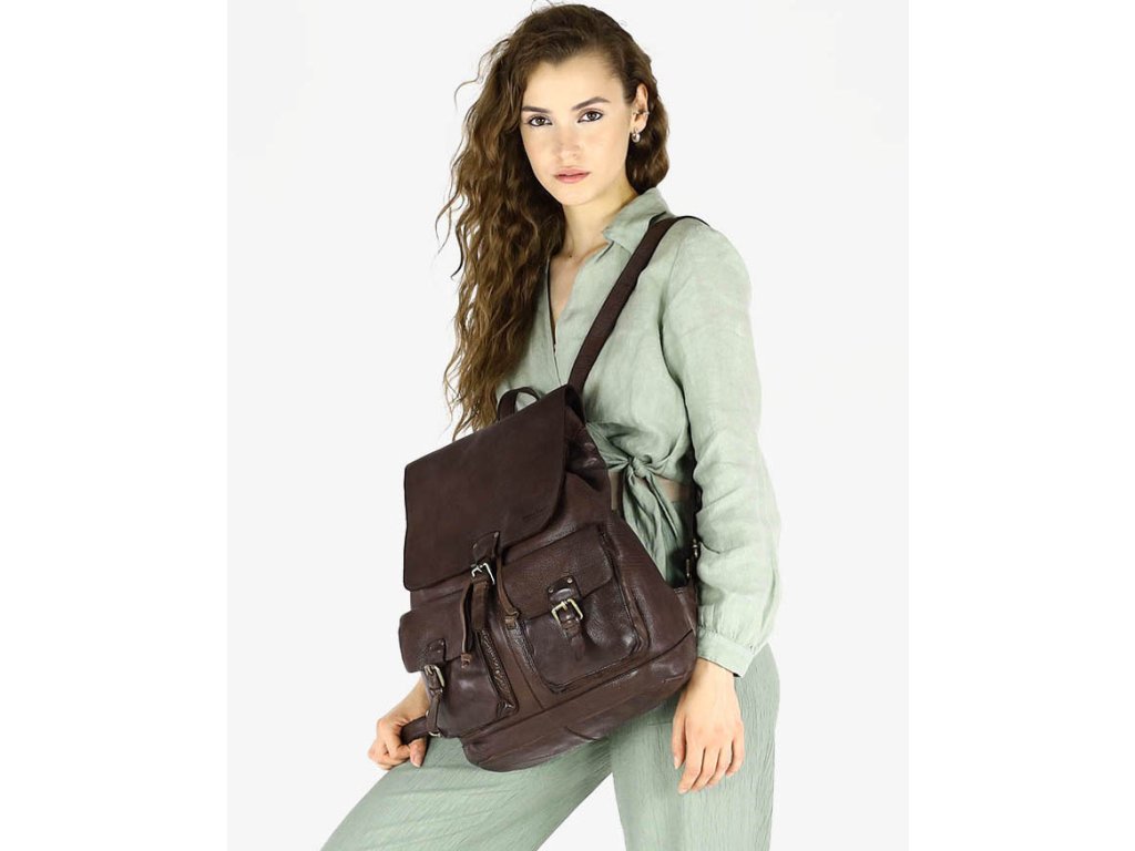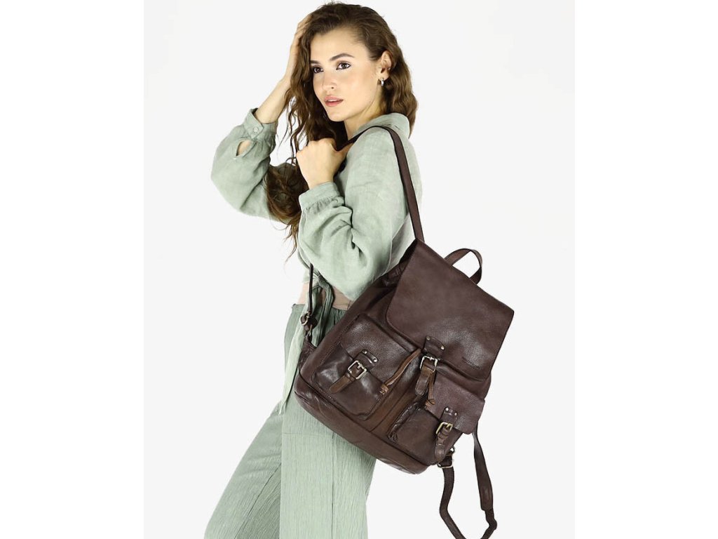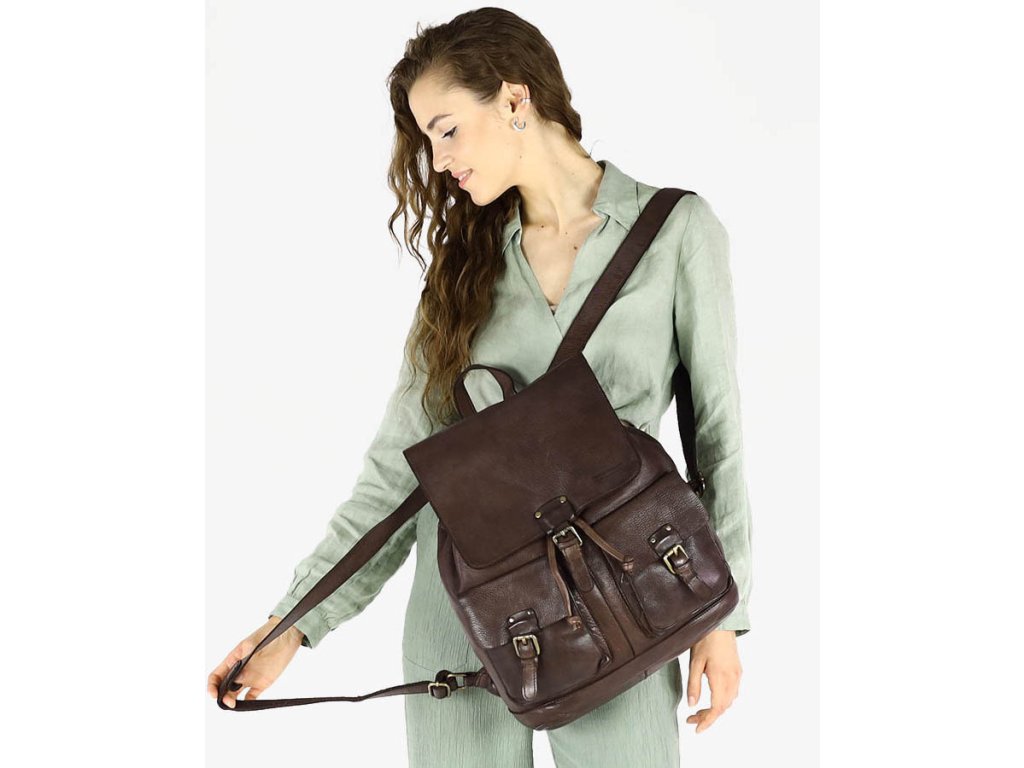 Elegantní dámský batoh formátu A4 z kůže MAZZINI; čokoláda