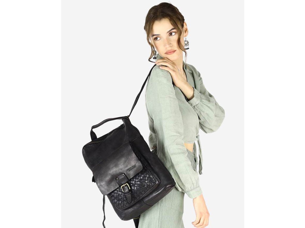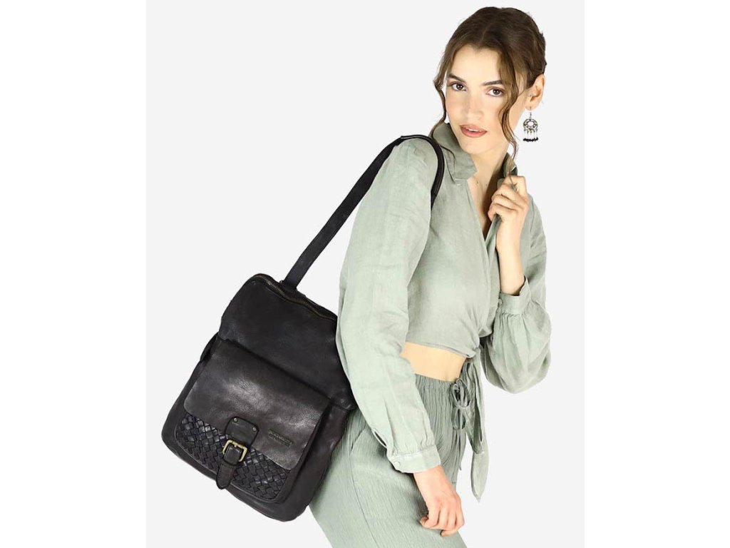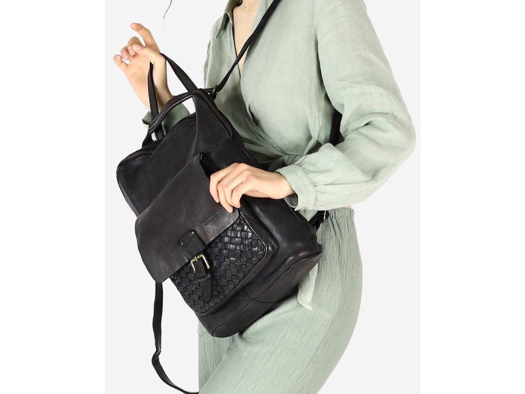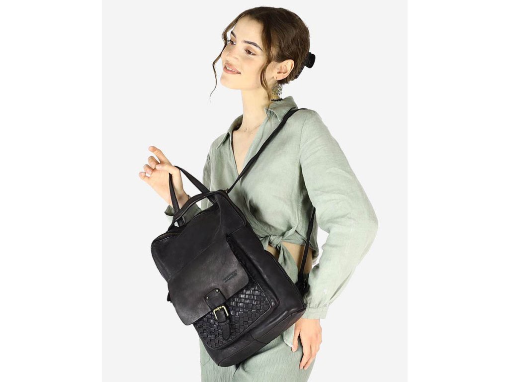 Kabelka i batoh 2v1 přírodní kůže MAZZINI; černá