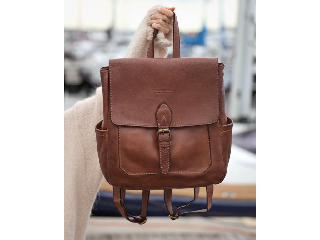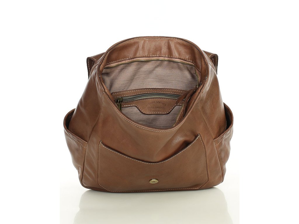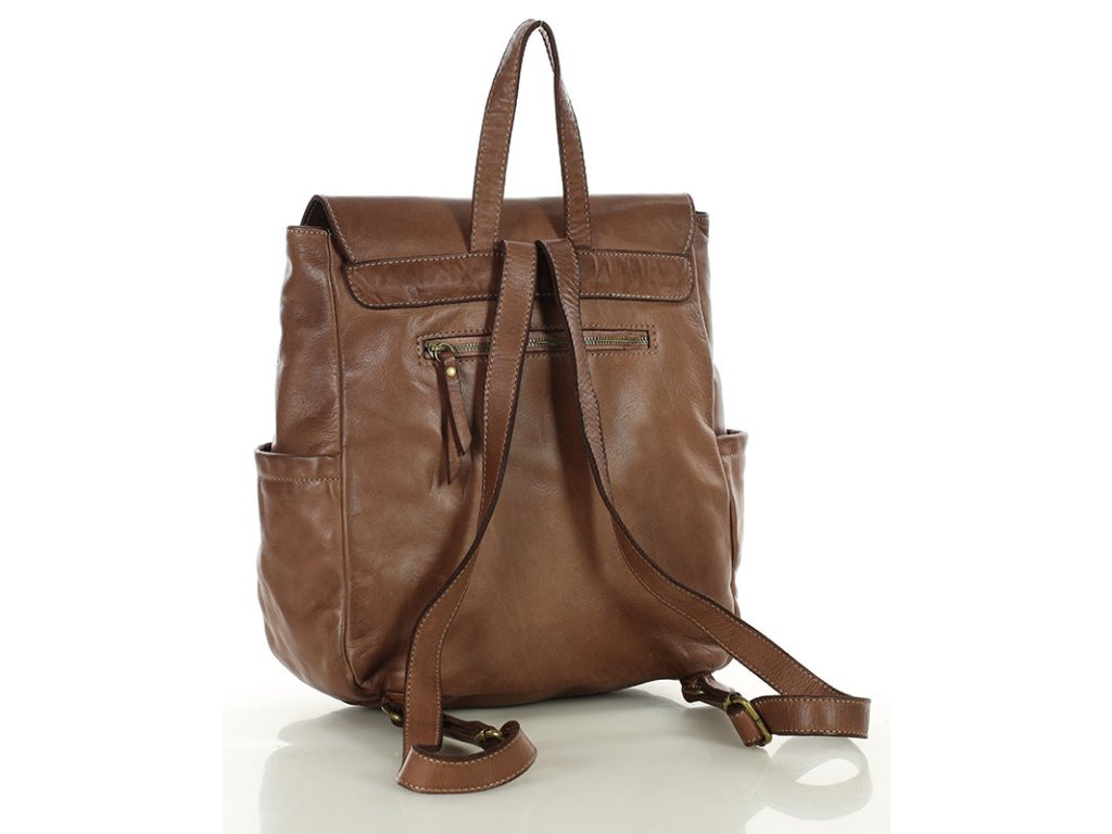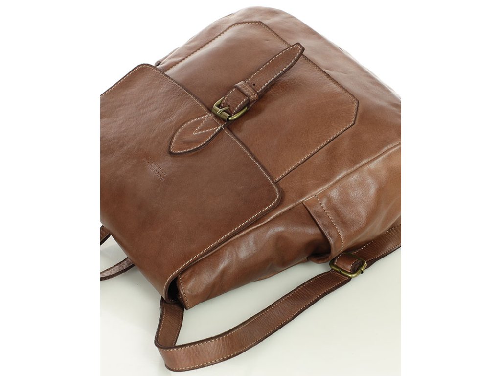 Ručně šitý kožený batoh s kapsami MAZZINI; čokoláda
