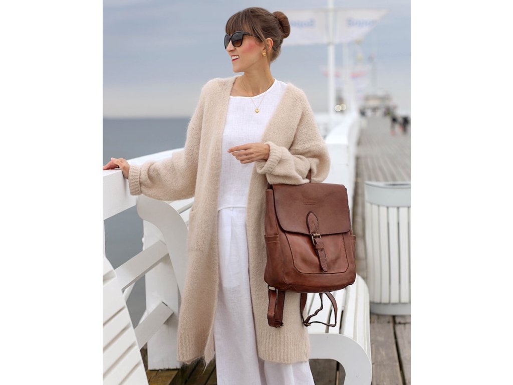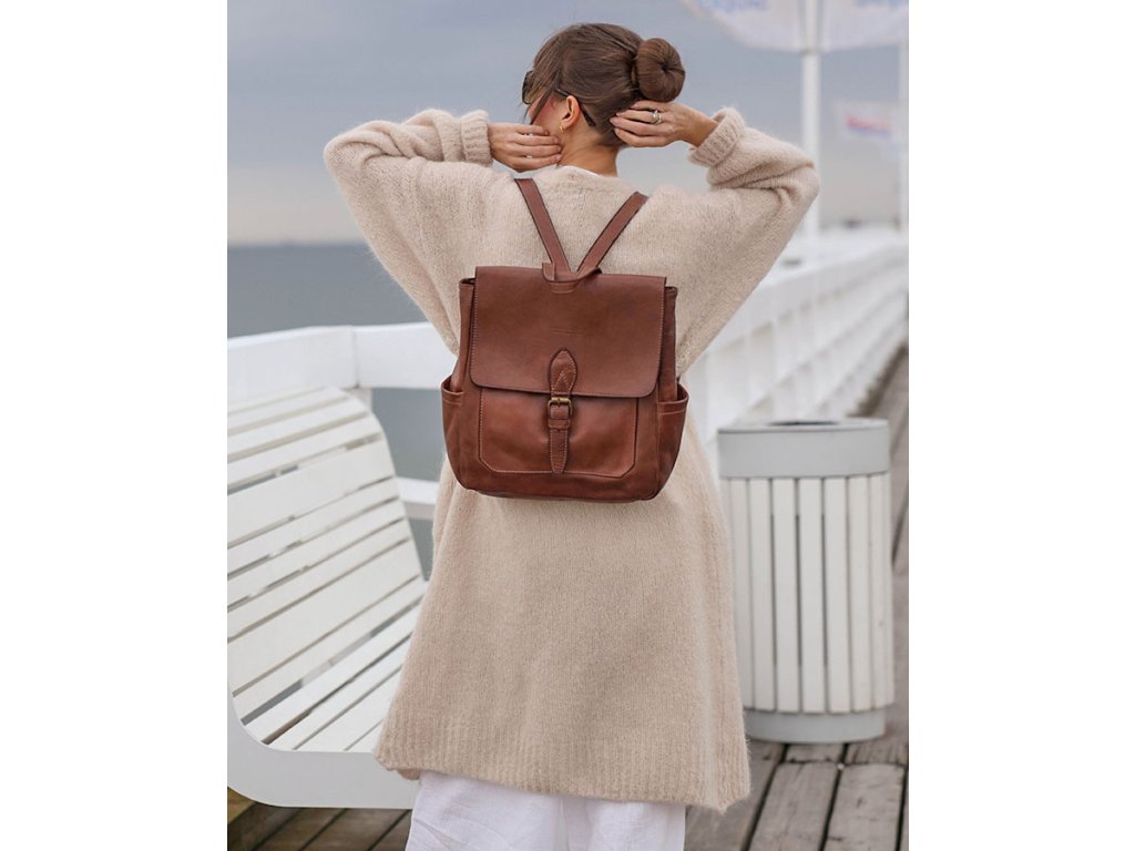 Dámský městský batoh je vyroben z přírodní kůže, což zaručuje jeho odolnost a odolnost pro každodenní použití. Tento batoh má mnoho kapes a přihrádek, což usnadňuje organizaci a ukládání různých předmětů. Uvnitř batohu jsou dvě kapsy, z toho jedna na zip. Vně batohu najdete další čtyři kapsy: vpředu pod klopou, na bocích a vzadu. Tato organizace prostoru zajistí pořádek mezi všemi drobnostmi, které s sebou nosíte. Vnitřek batohu je zakončen bavlněnou podšívkou. Přístup do vnitřku batohu je dvojitě zajištěn zipem a magnetickým zavíráním. Tento dámský městský batoh se velmi pohodlně nosí, díky nastavitelným popruhům a praktické rukojeti. Díky minimalistickému designu a tlumeným barvám se tento batoh hodí k mnoha stylům.
