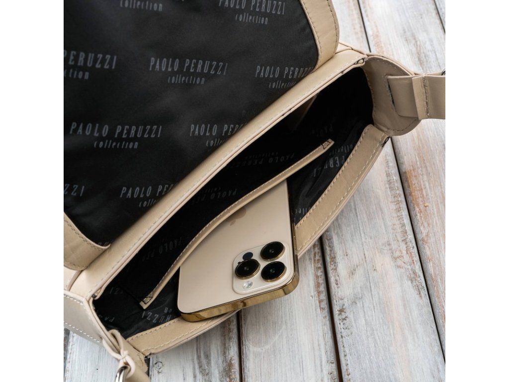 Dámská kožená módní taška přes rameno z lícové kůže Peruzzi; béžová