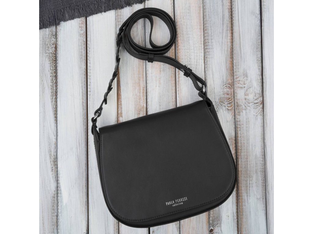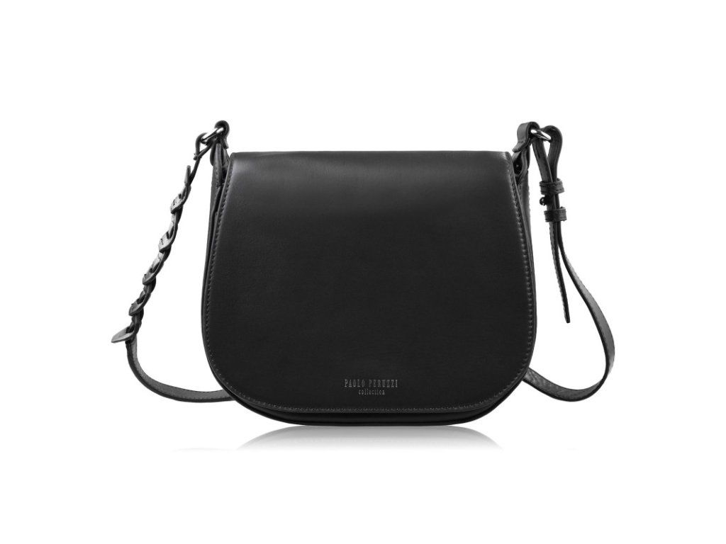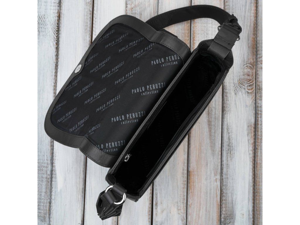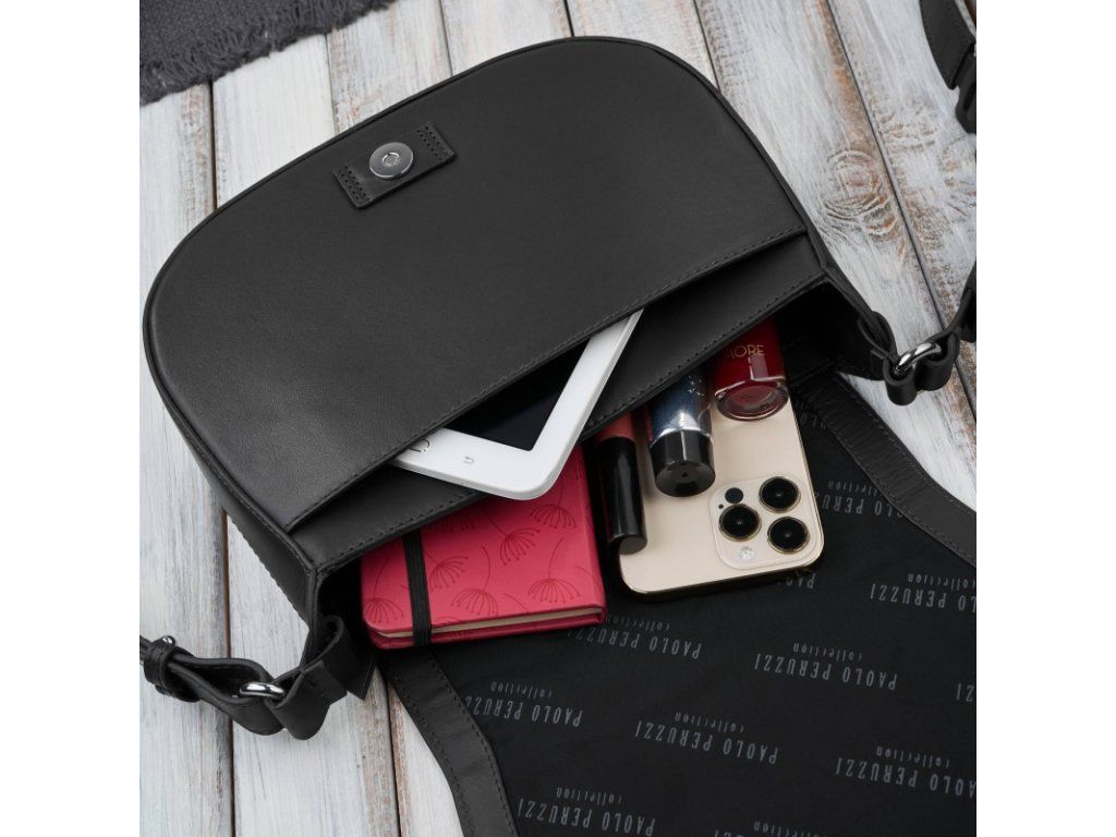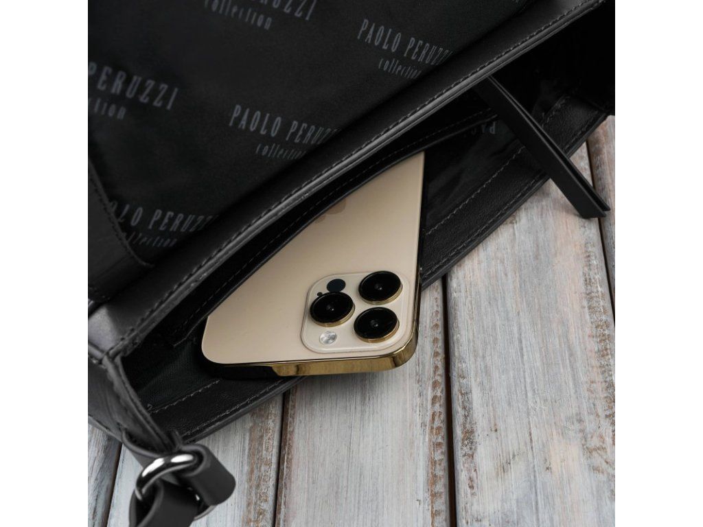 Dámská kožená módní taška přes rameno z lícové kůže Peruzzi; černá