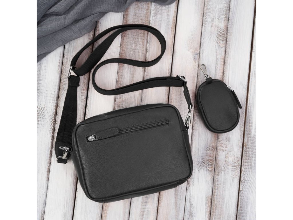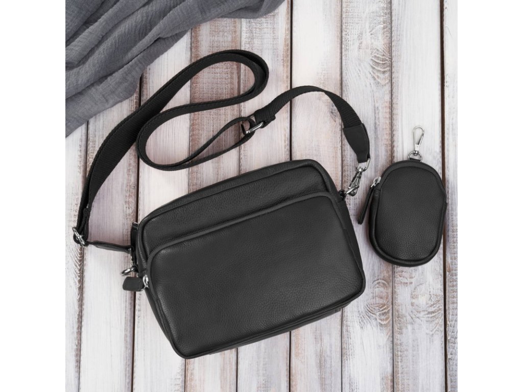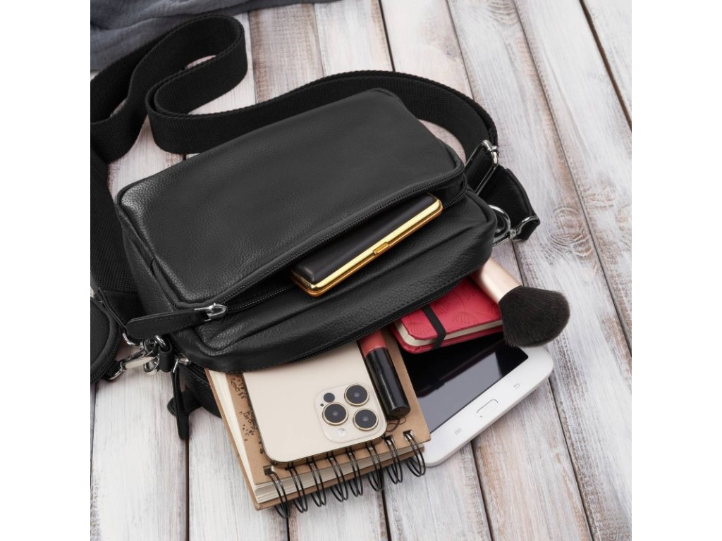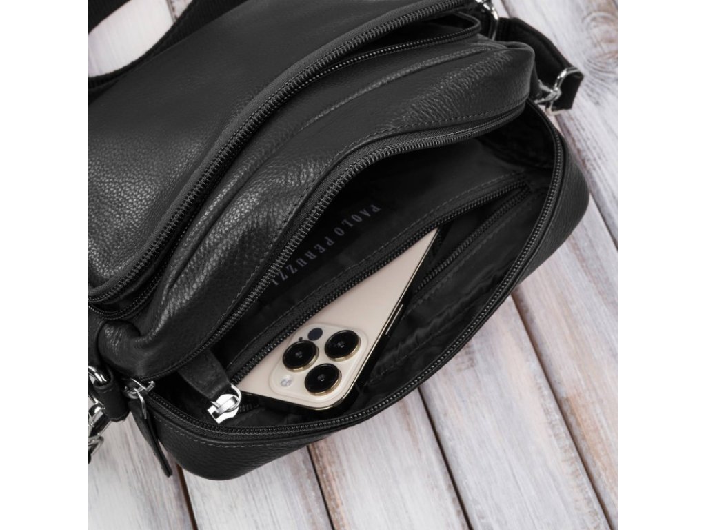 Dámská kožená taška přes rameno s pouzdrem na klíče Peruzzi; černá