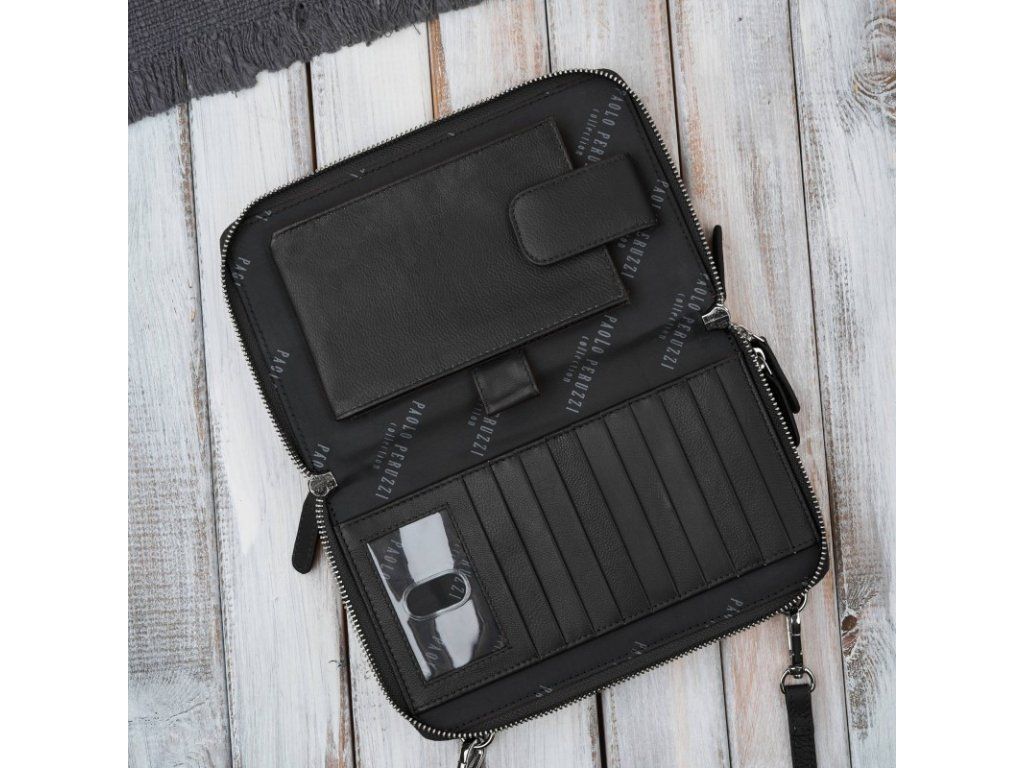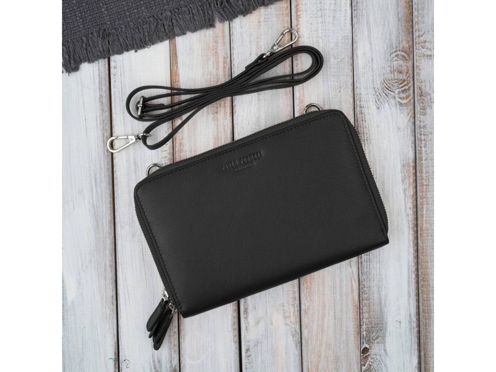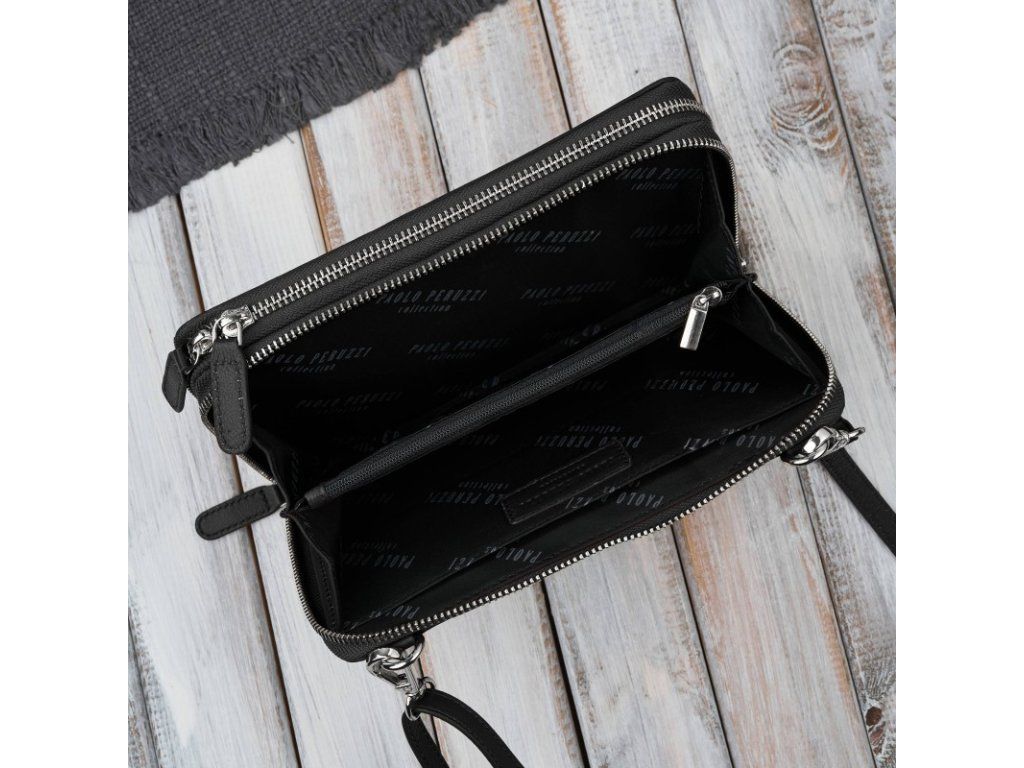 Dámská malá kožená kabelka přes rameno Paolo Peruzzi; černá se stříbrným kováním