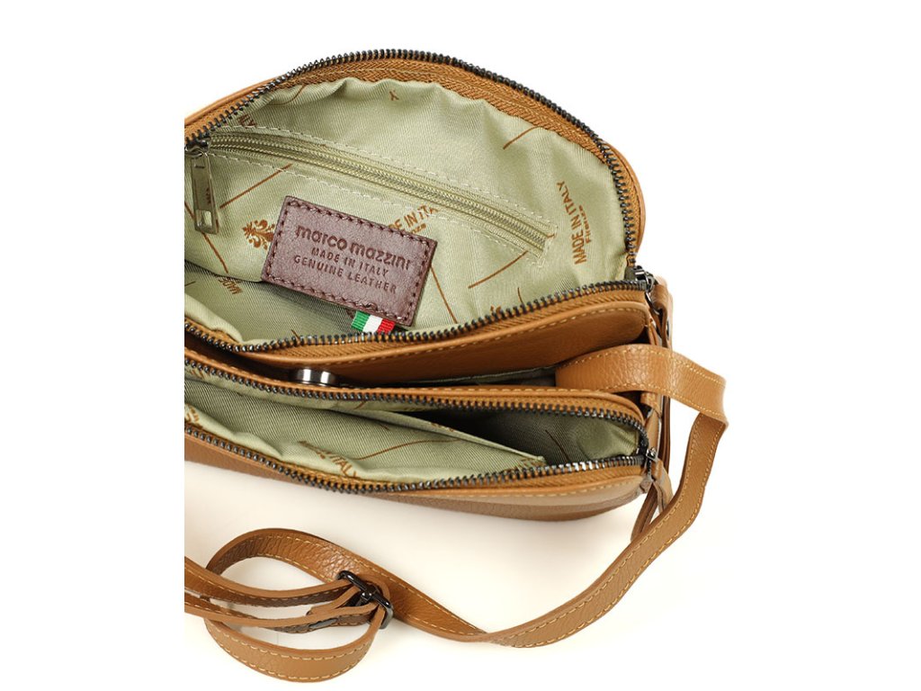 Kožené italské crossbody MAZZINI dvě komory; velbloud