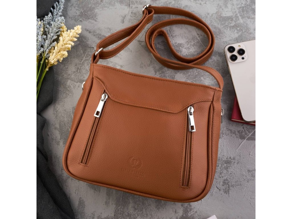 Menší dámská kožená taška PAOLO PERUZZI; koňak