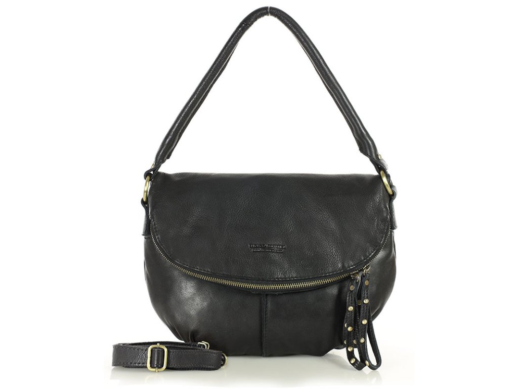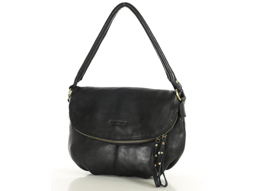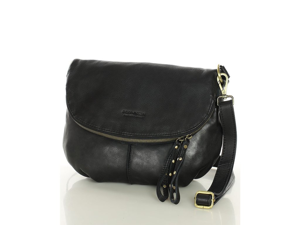 Velká kožená crossbody taška přes rameno MAZZINI; černá