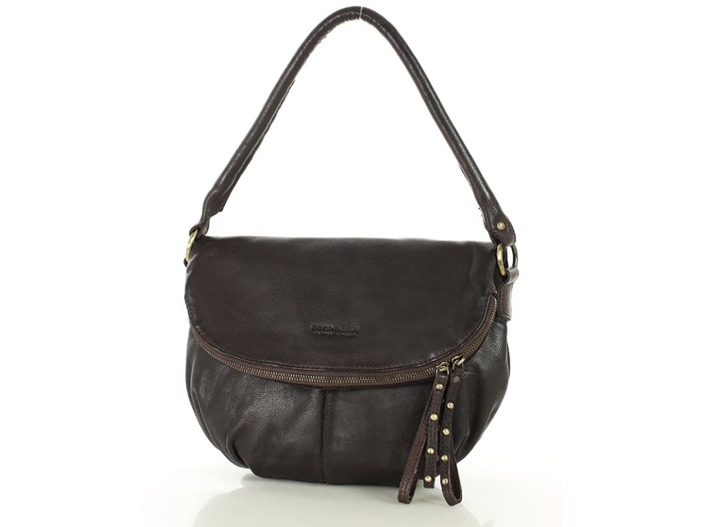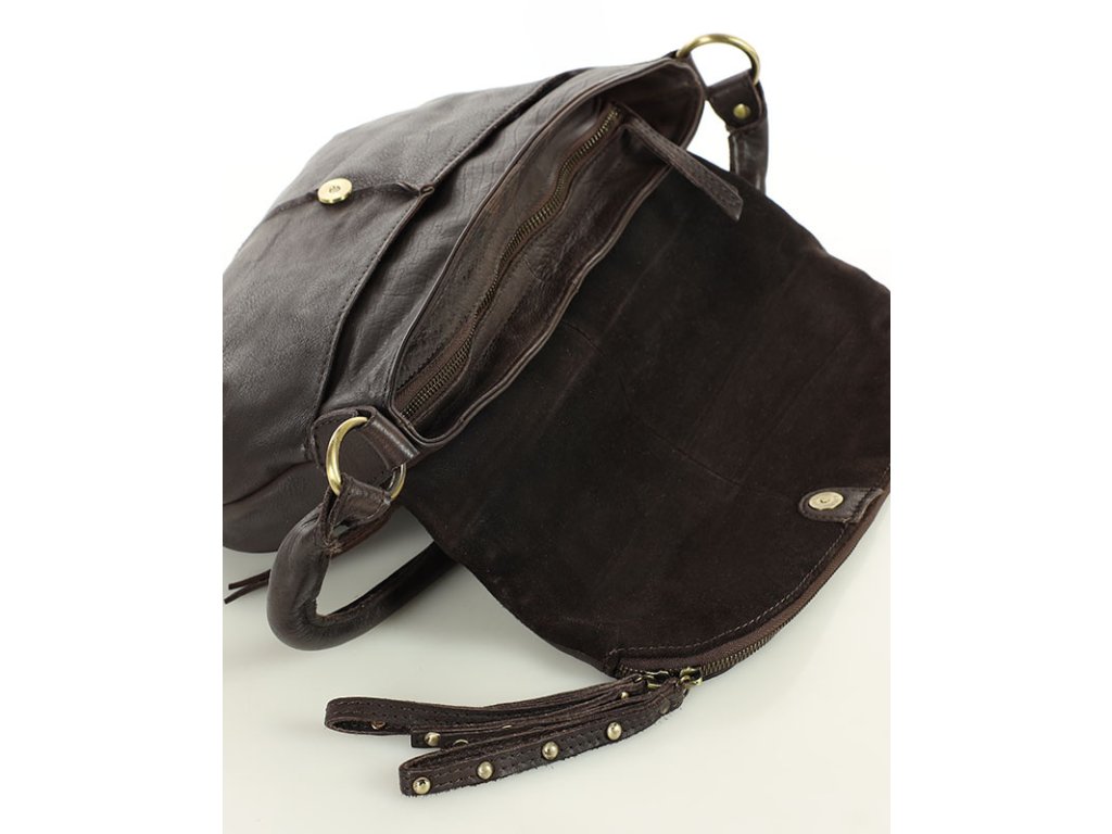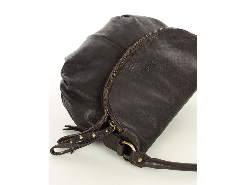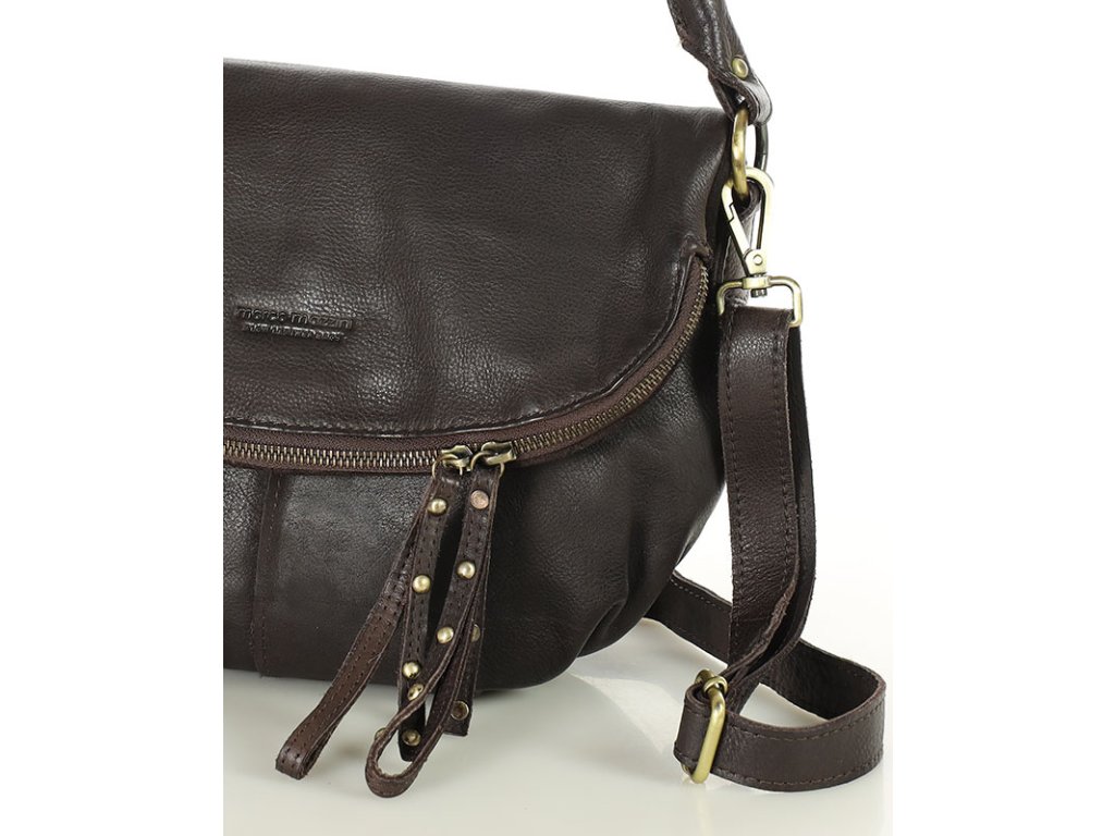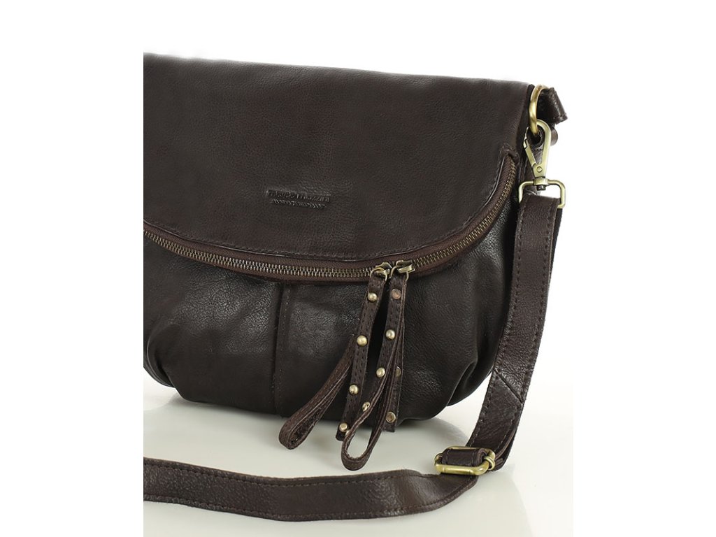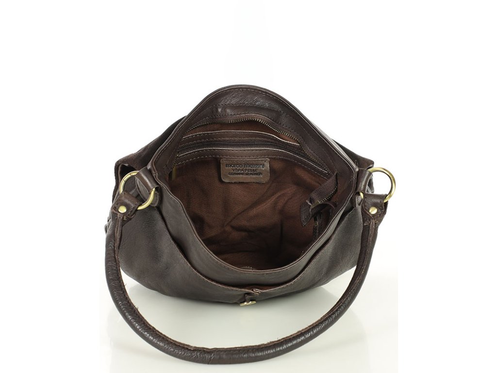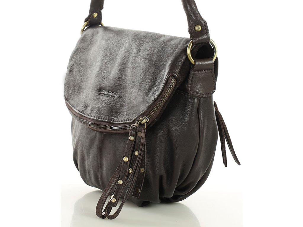 Velká kožená crossbody taška přes rameno MAZZINI; čokoláda