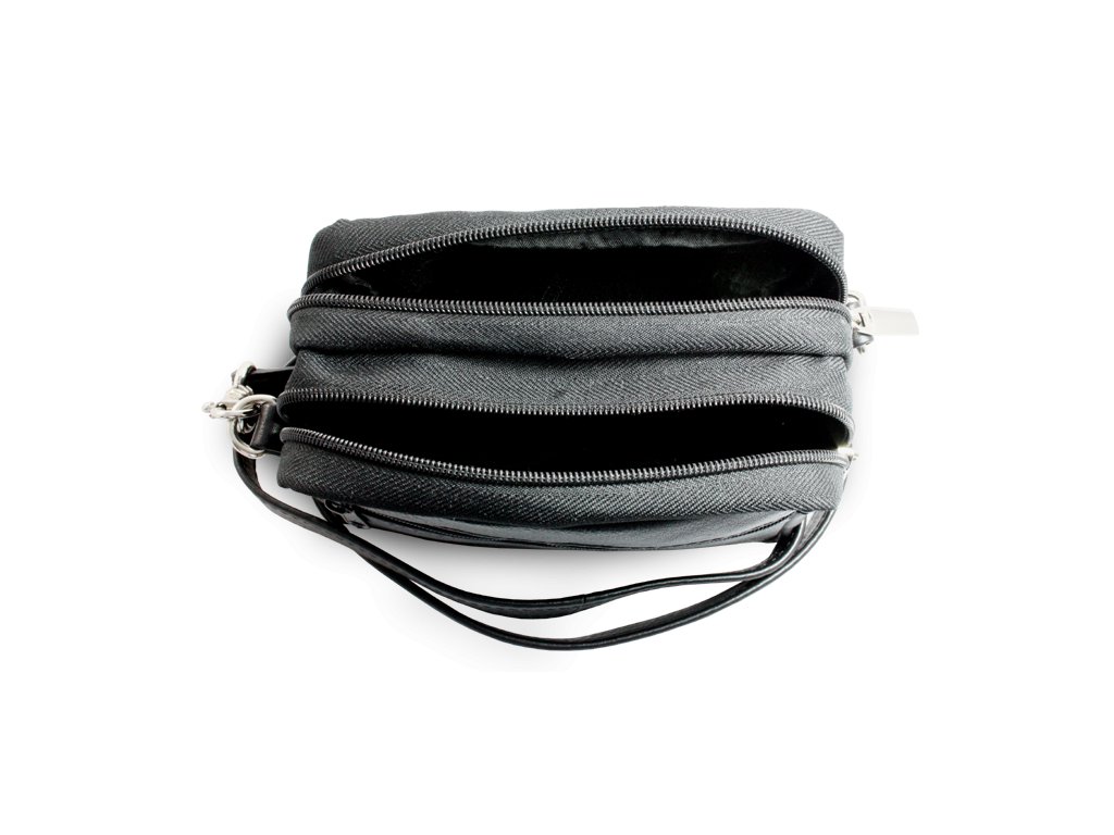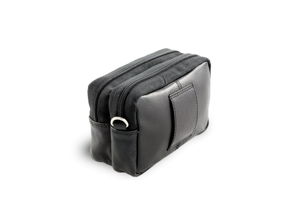 Menší kožená etue na doklady pro cestování a turistiku. 2 velké zipové kapsy a malá přední kapsička, na zadní straně poutko pro opasek, součástí je odepínací a nastavitelný kožený popruh v max délce 140 cm s karabinkami.