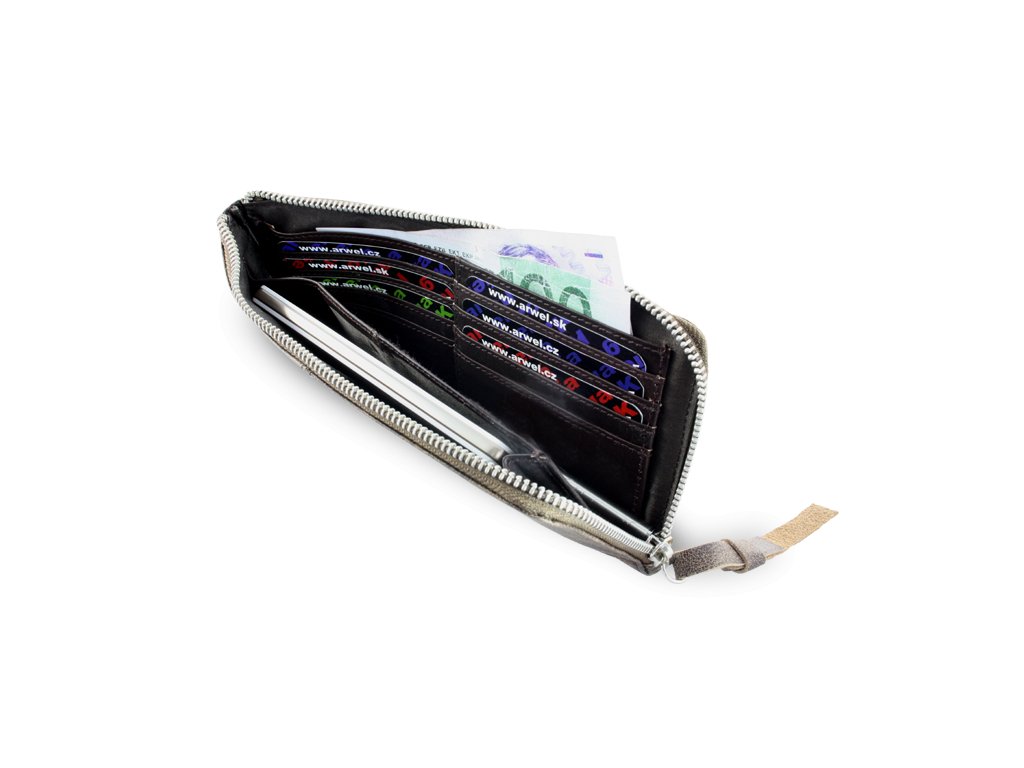 Velká vnitřní přihrádka na mobil až do velikosti 16 x 8,5 cm. 10 vnitřních kapes na kreditní karty + 1 velká vnitřní kapsa na bankovky.
