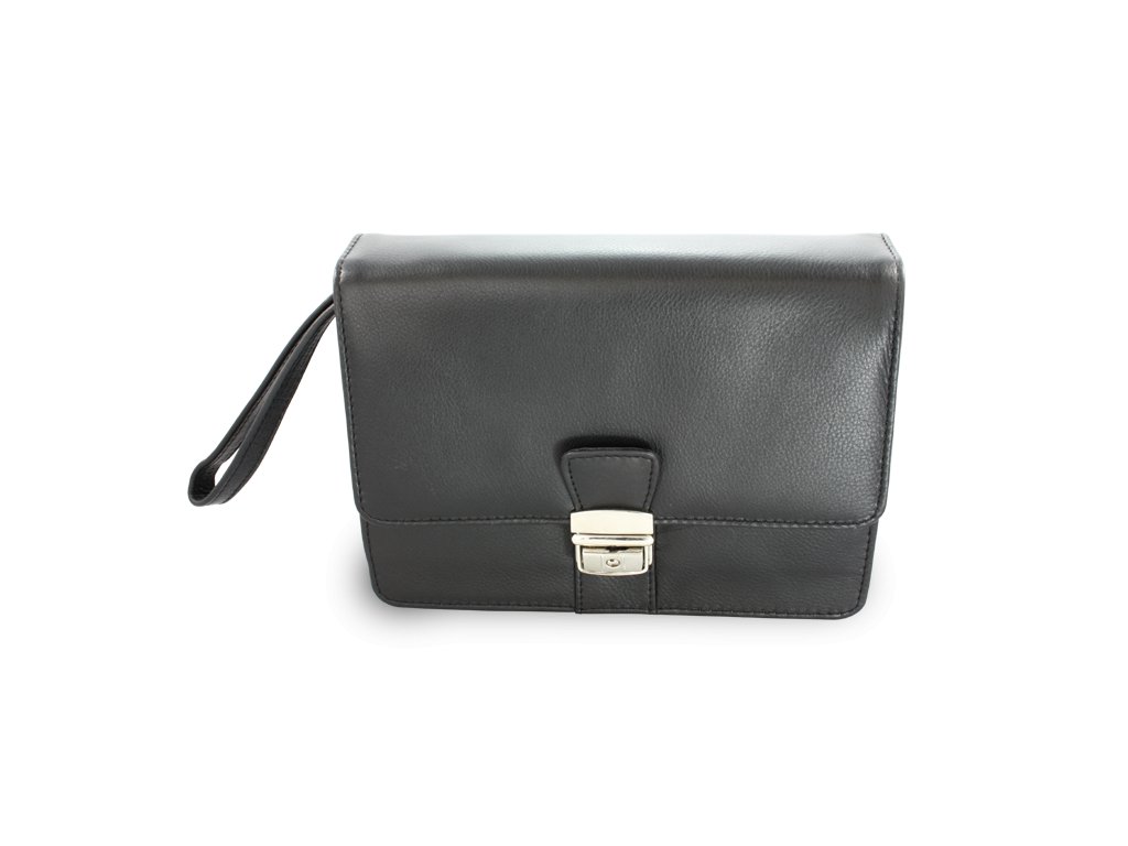 2 separace oddělené zipovou kapsou, 4 kapsy pro kreditní karty, 2 zipové a 1 vnitřní kapsa, odepínatelný kroužek na klíče, venkovní zipová kapsa, poutko na zápěstí.