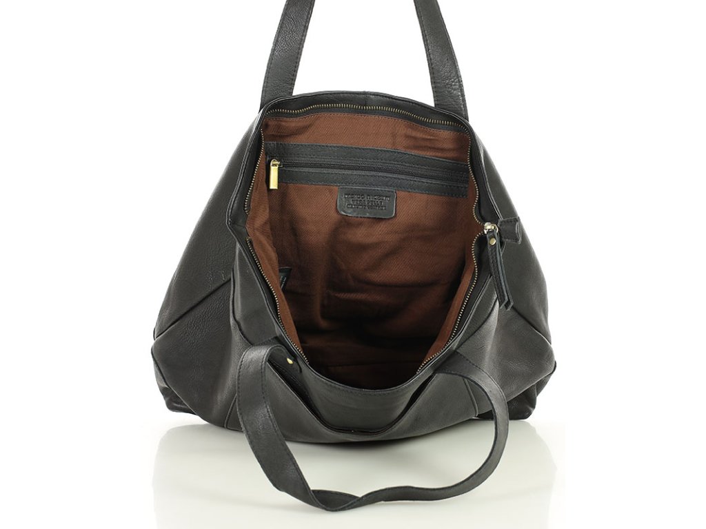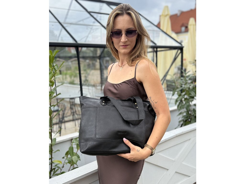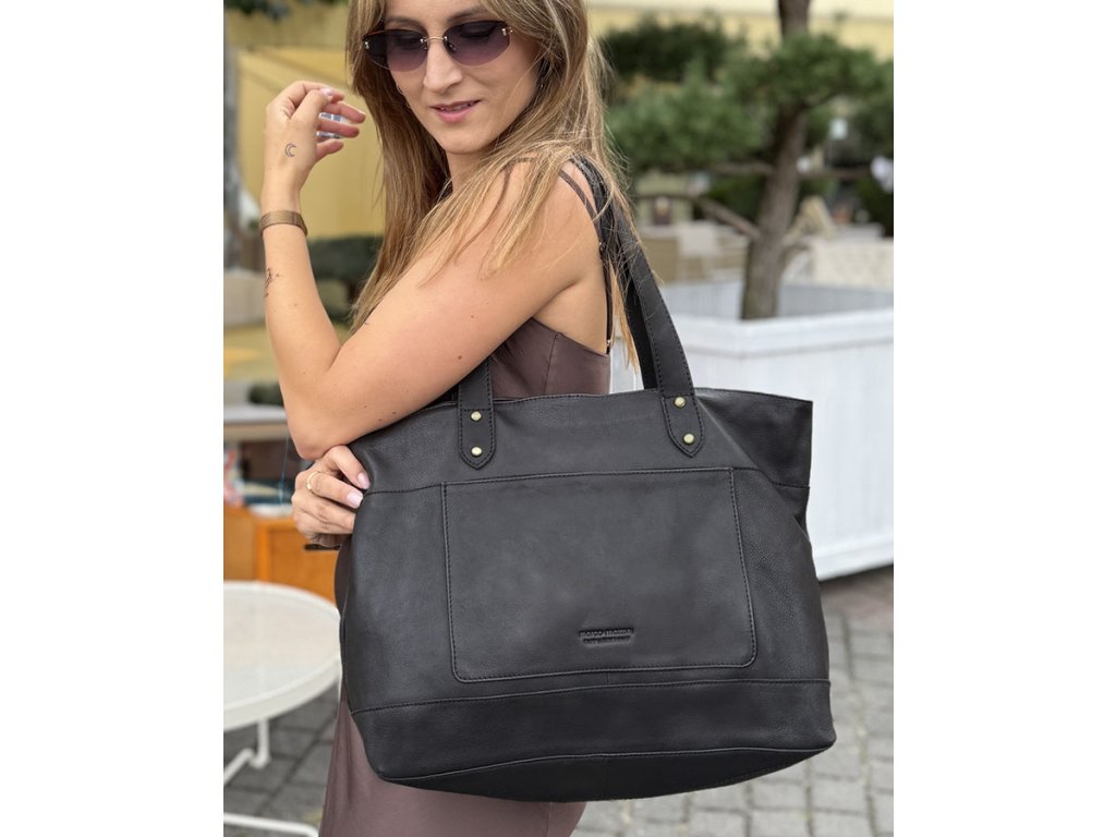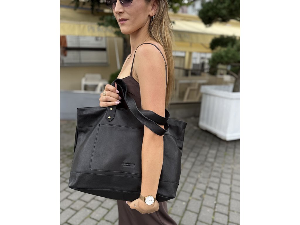 Dámská kožená nákupní taška s kapsami MAZZINI; černá