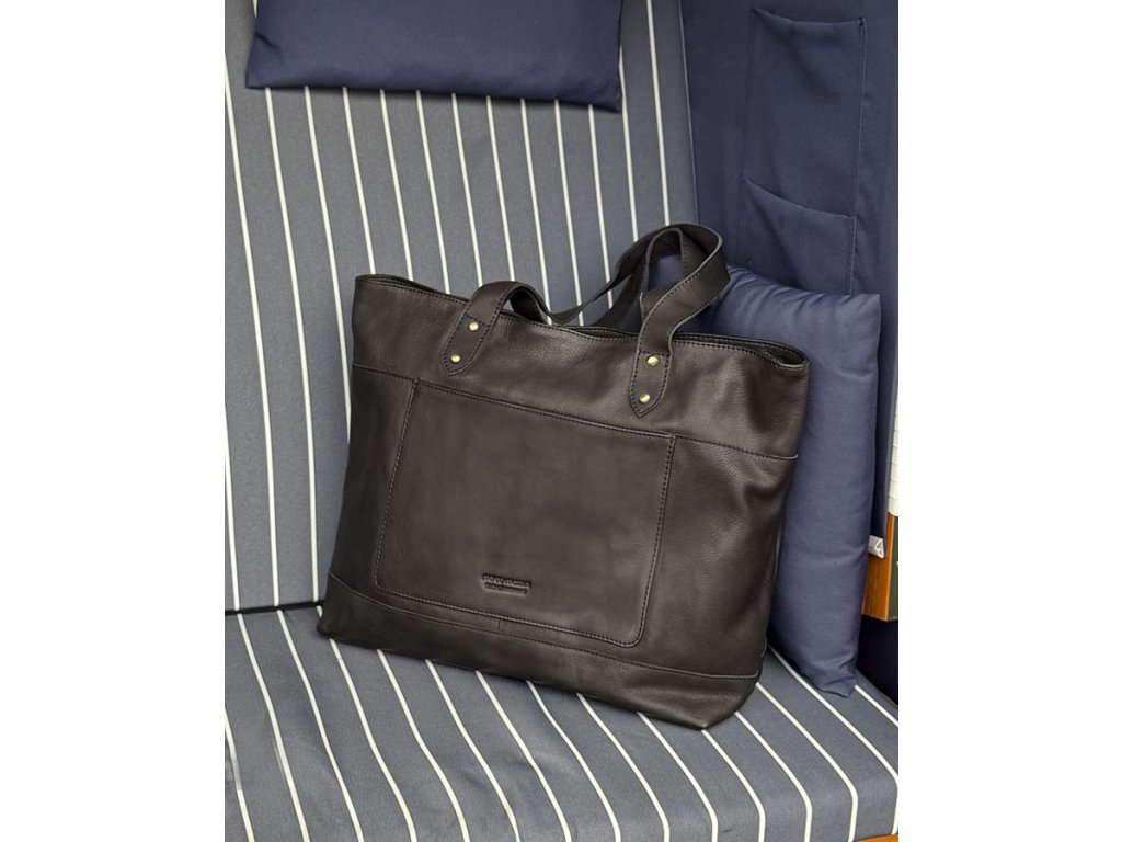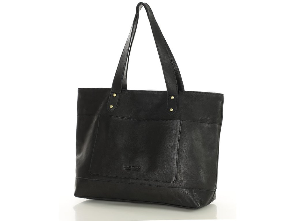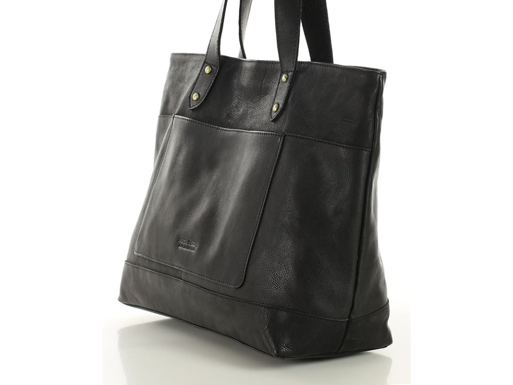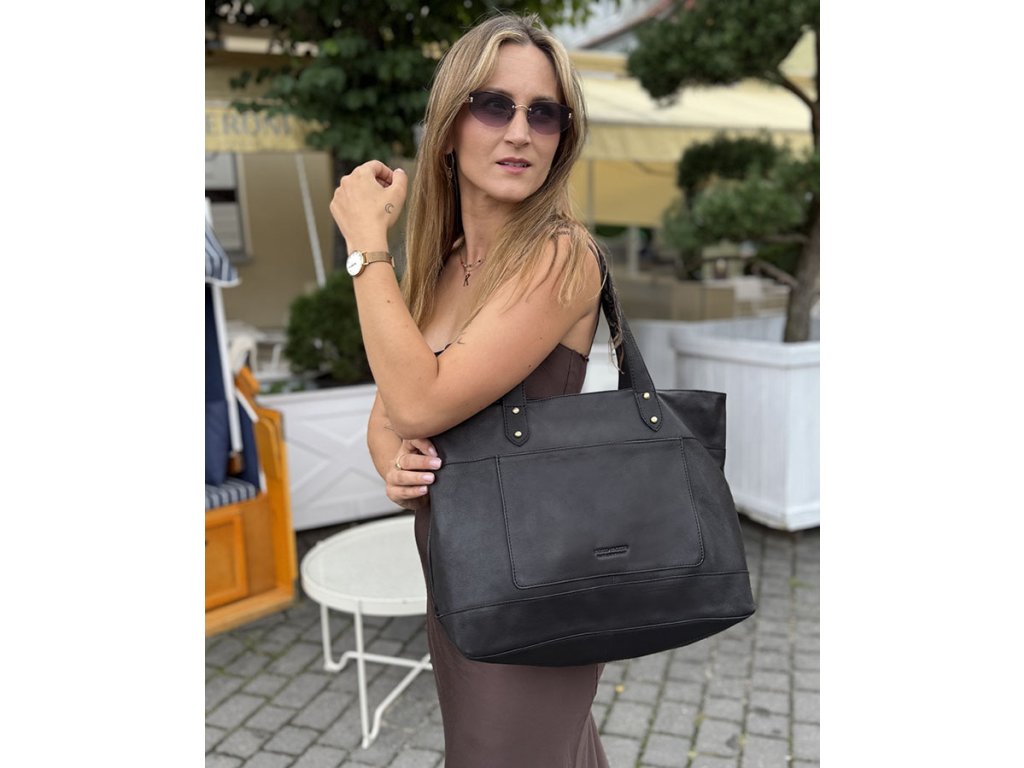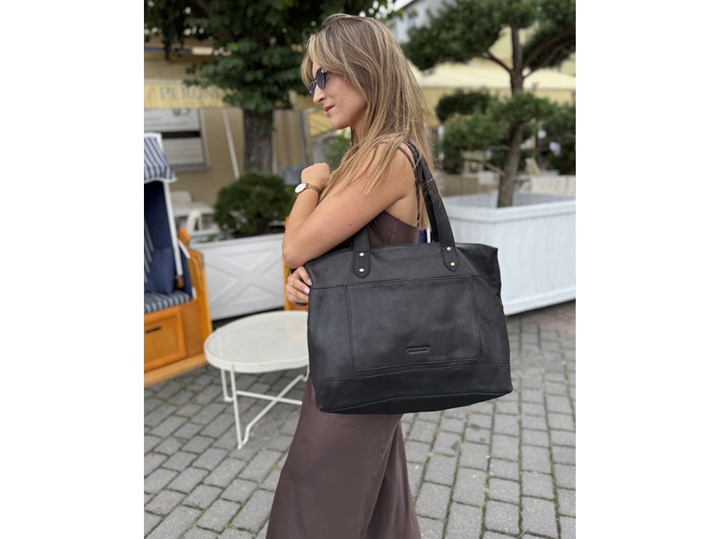 Dámská kožená nákupní taška s kapsami MAZZINI; černá