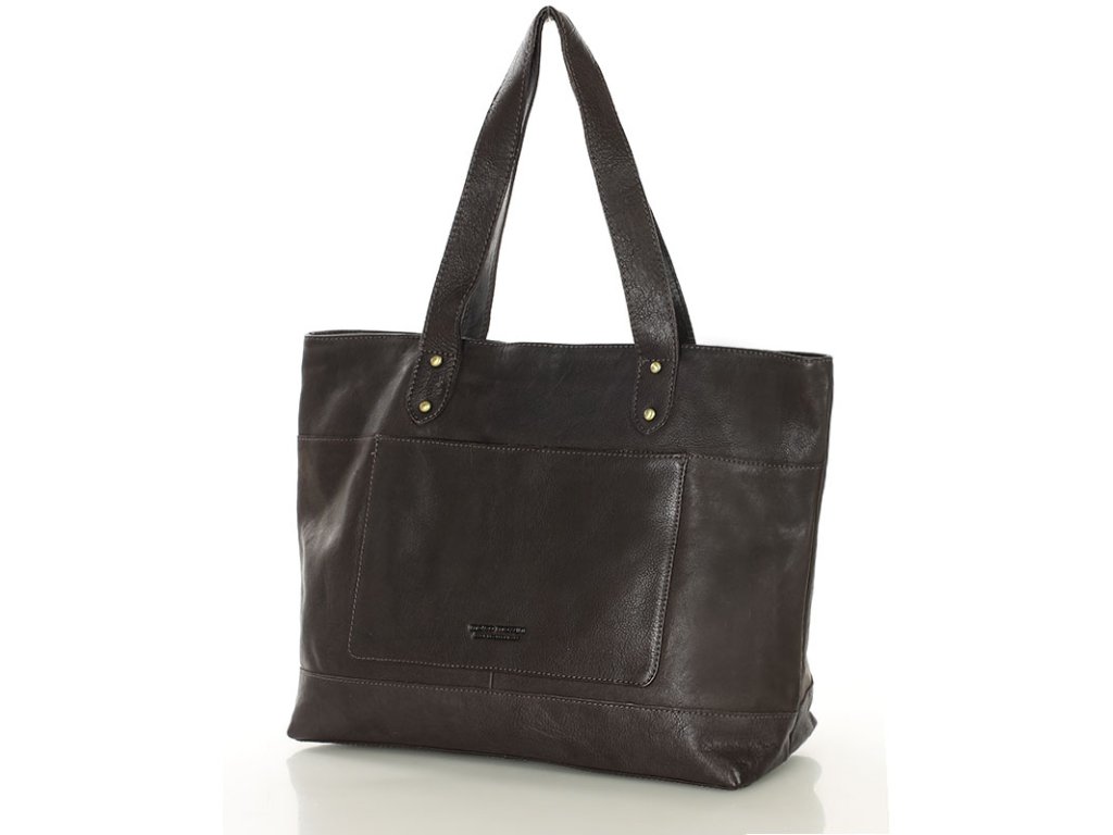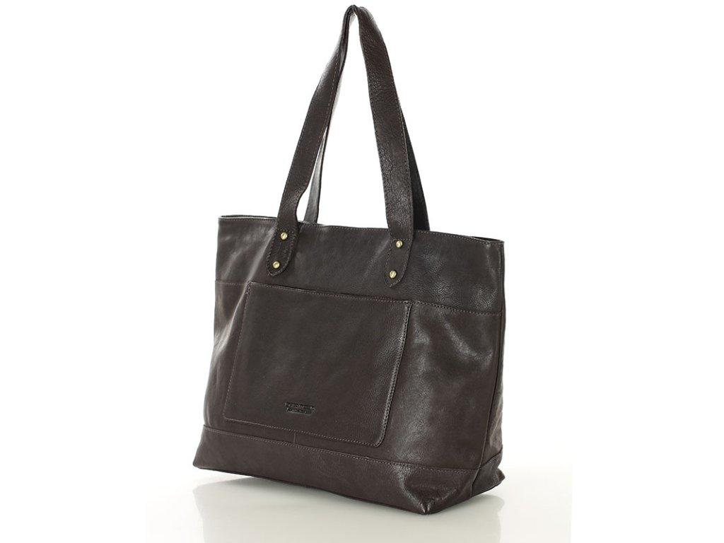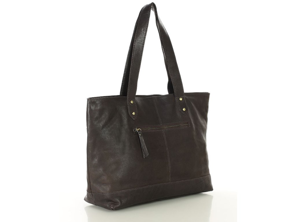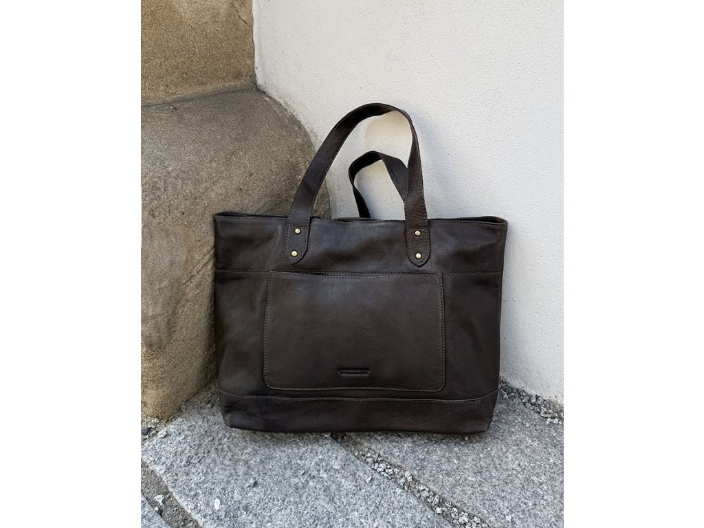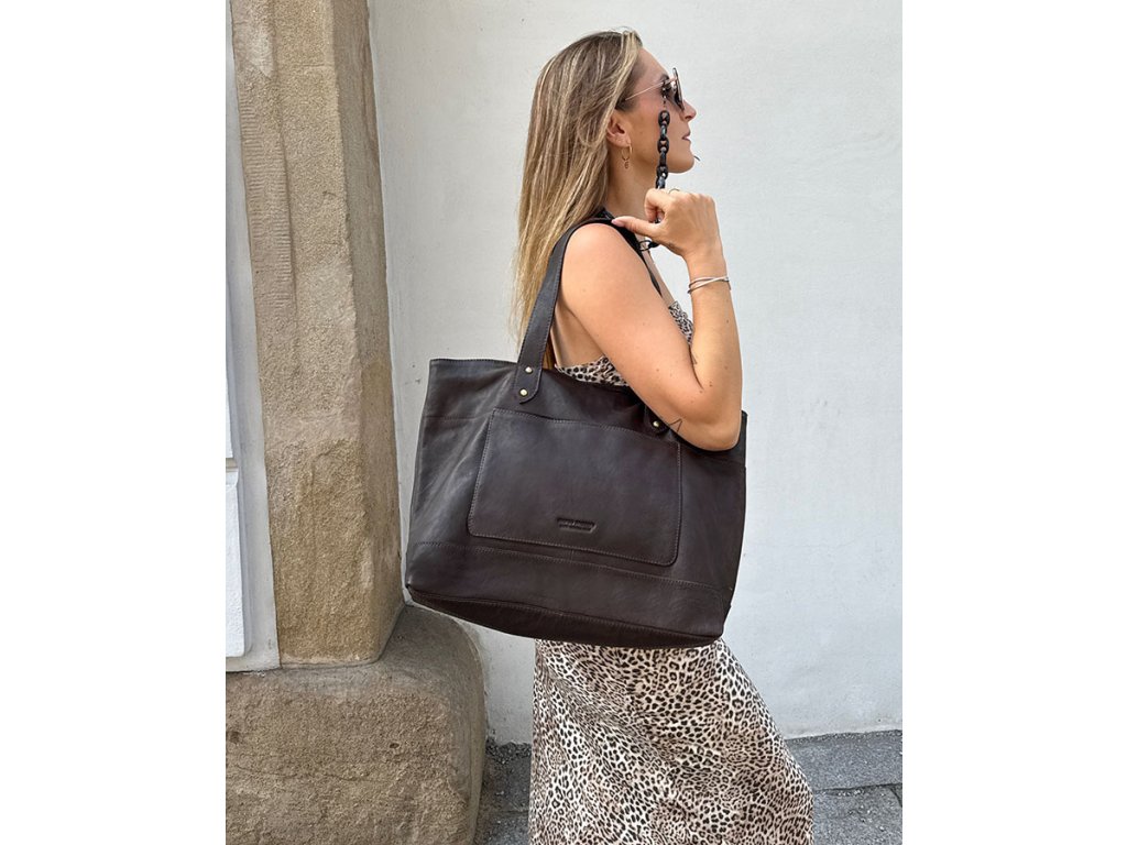 Dámská kožená nákupní taška s kapsami MAZZINI; čokoláda