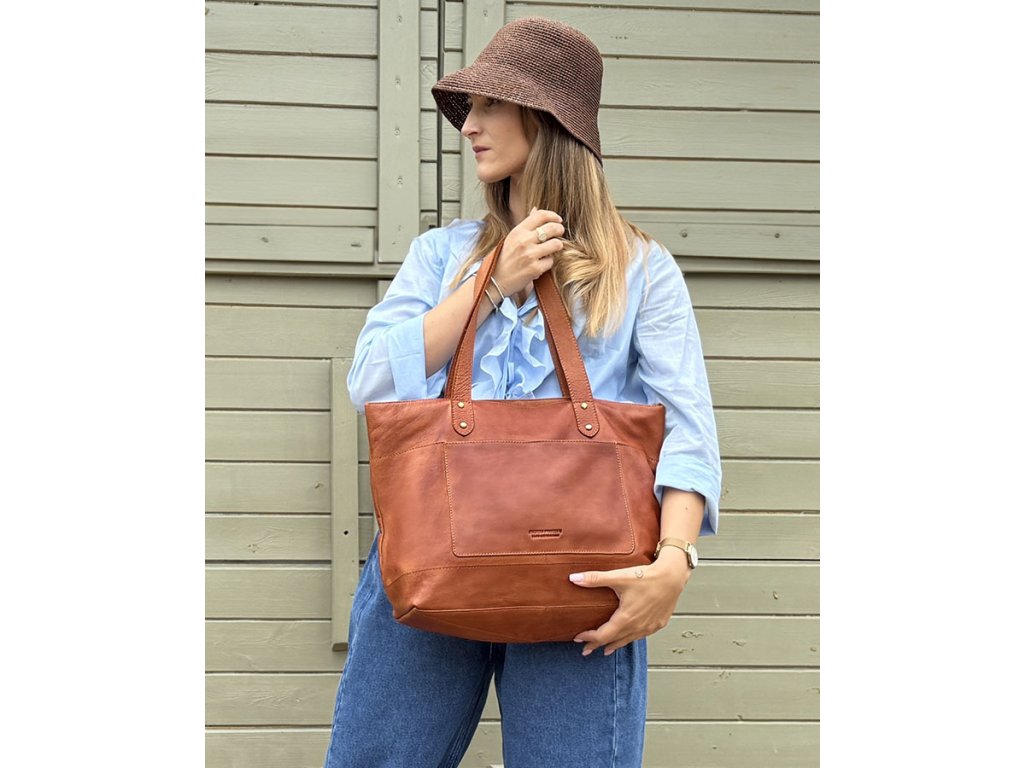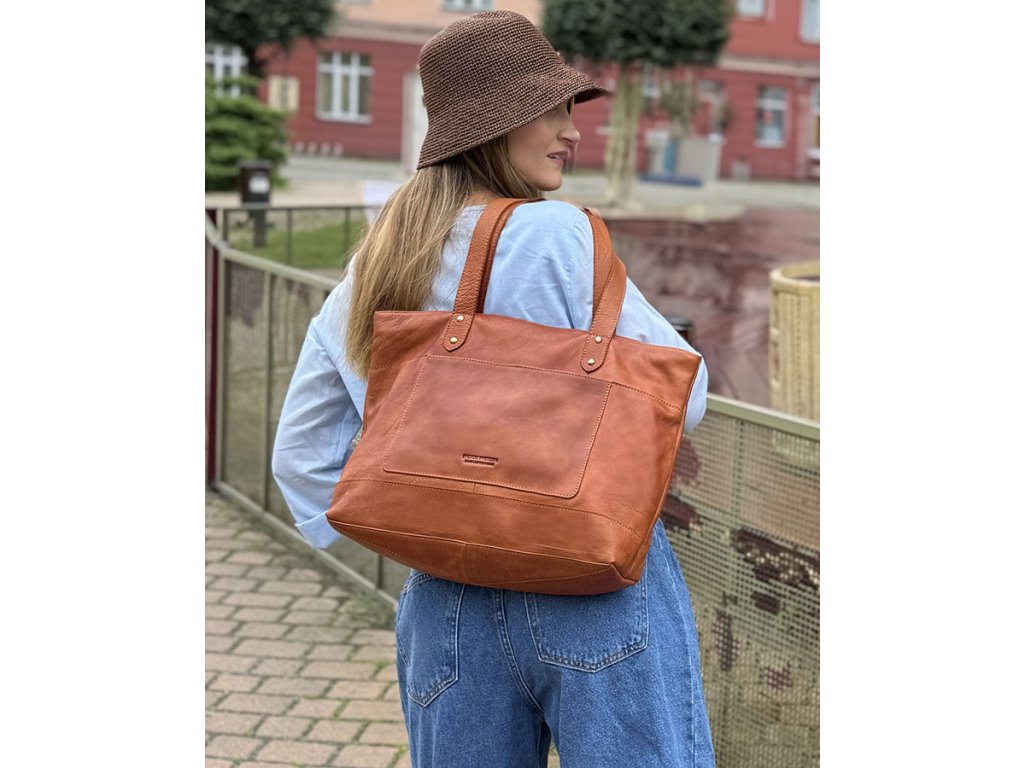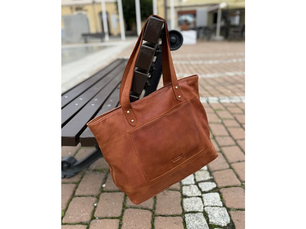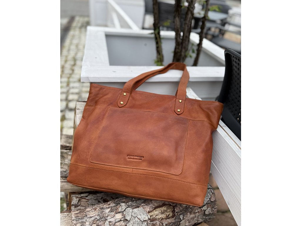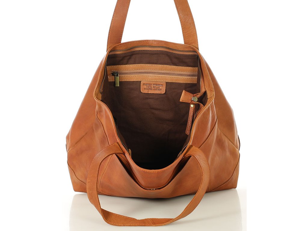 Dámská kožená nákupní taška s kapsami MAZZINI; velbloud