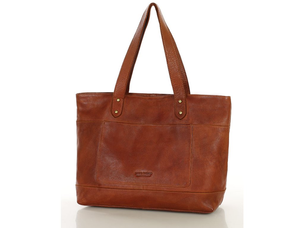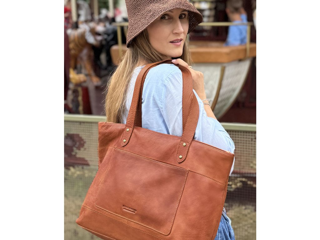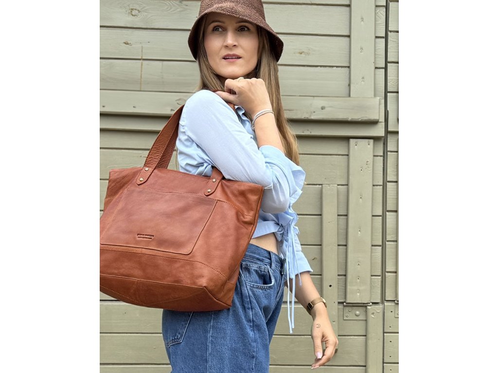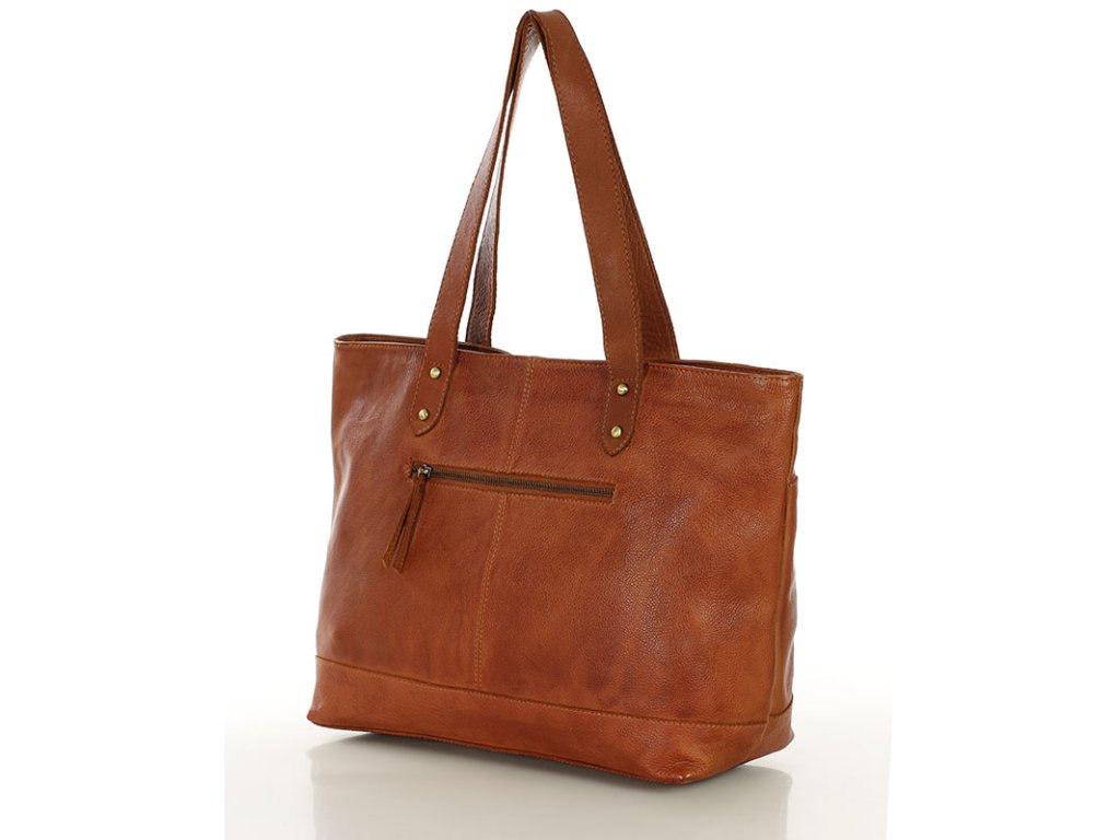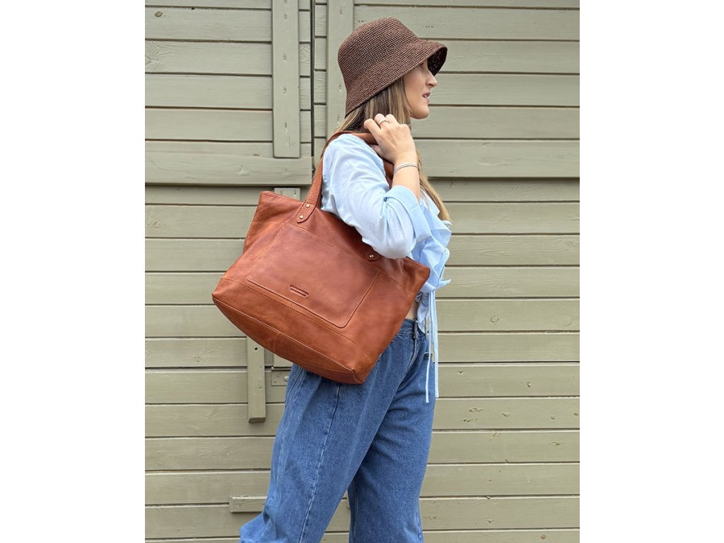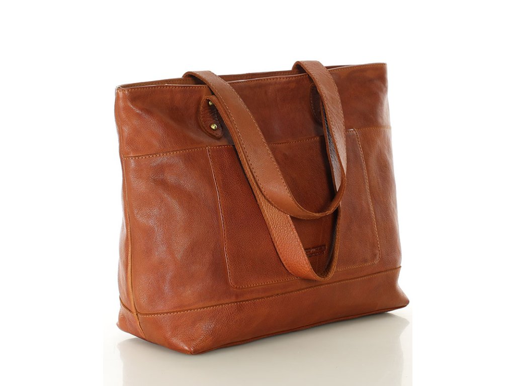 Dámská kožená nákupní taška s kapsami MAZZINI; velbloud