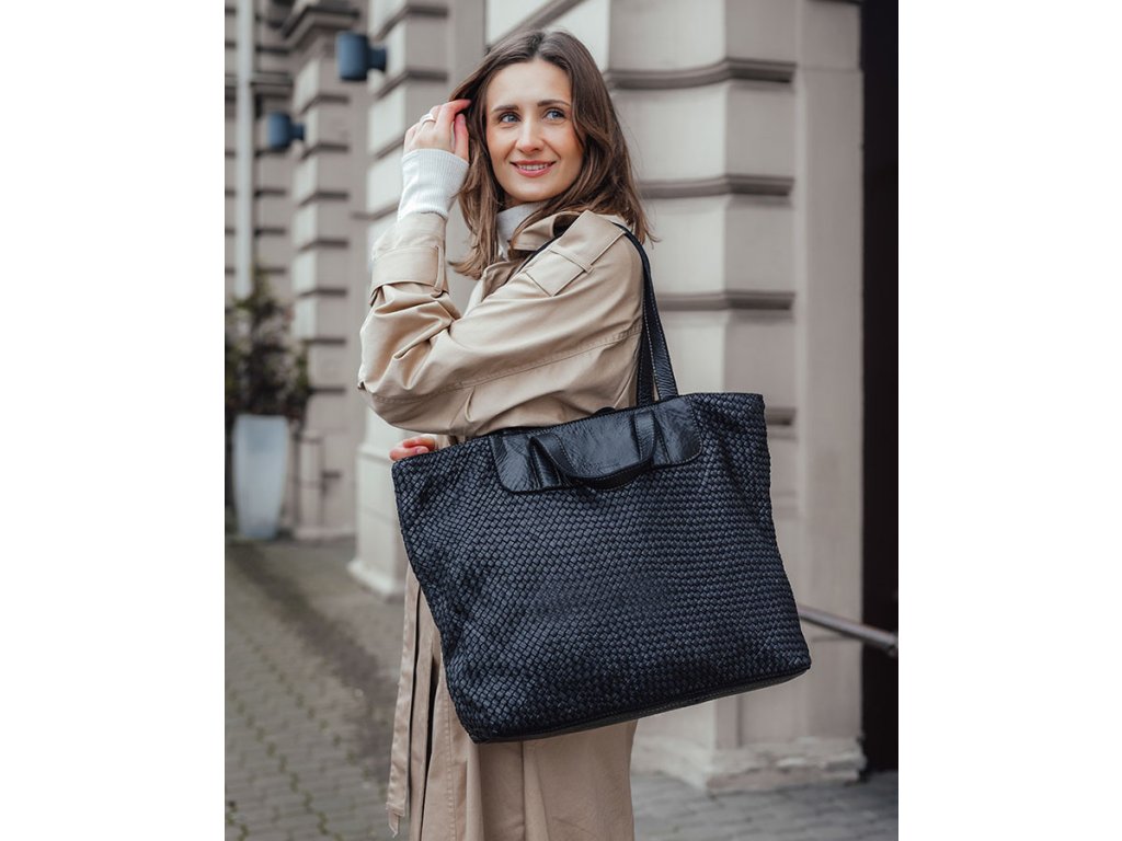 Dámská protkaná shopper taška přes rameno MAZZINI; černá