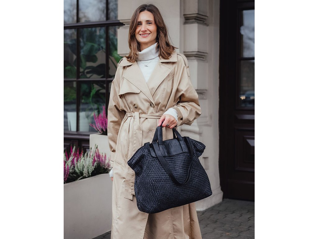 Ručně pletené kožené řemínky zdůrazňují řemeslné zpracování. Taška je určena k nošení v ruce nebo na rameni. Vnitřek je těsně uzavřen na zip. Uvnitř nabízí dvě větší přihrádky a kapsu na zip. Celek je pečlivě zakončen podšívkou.