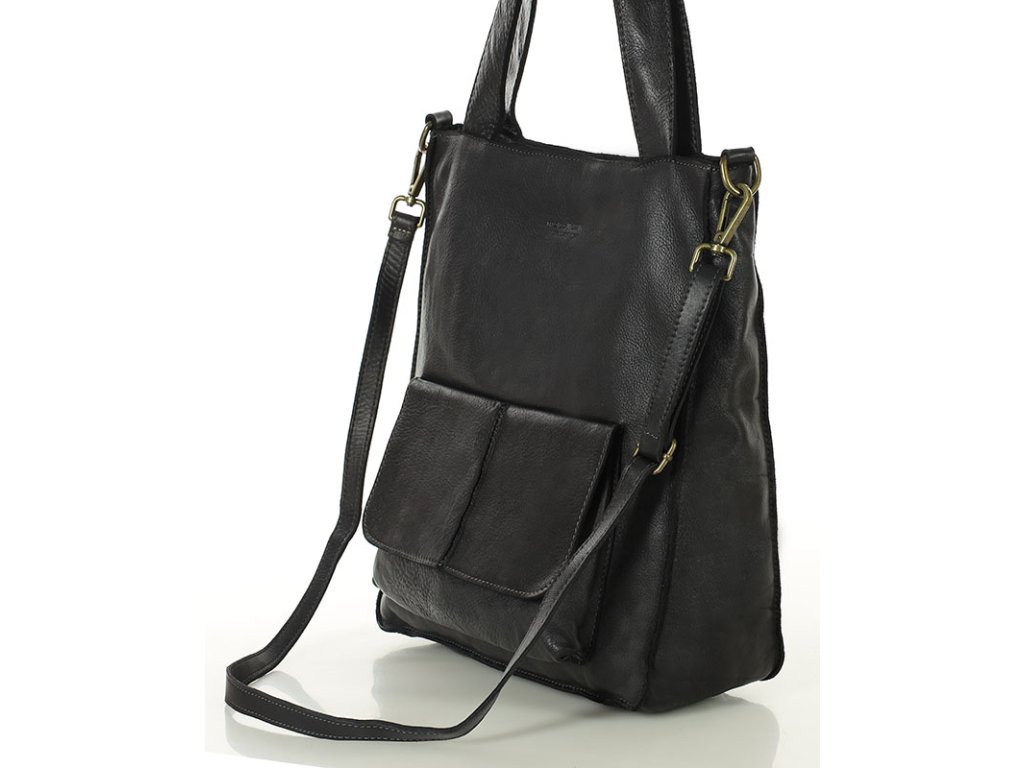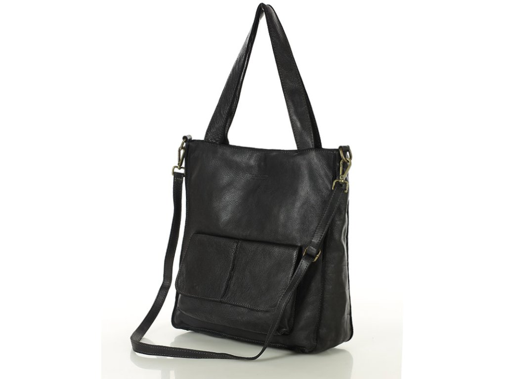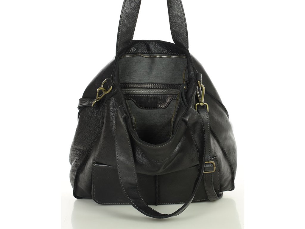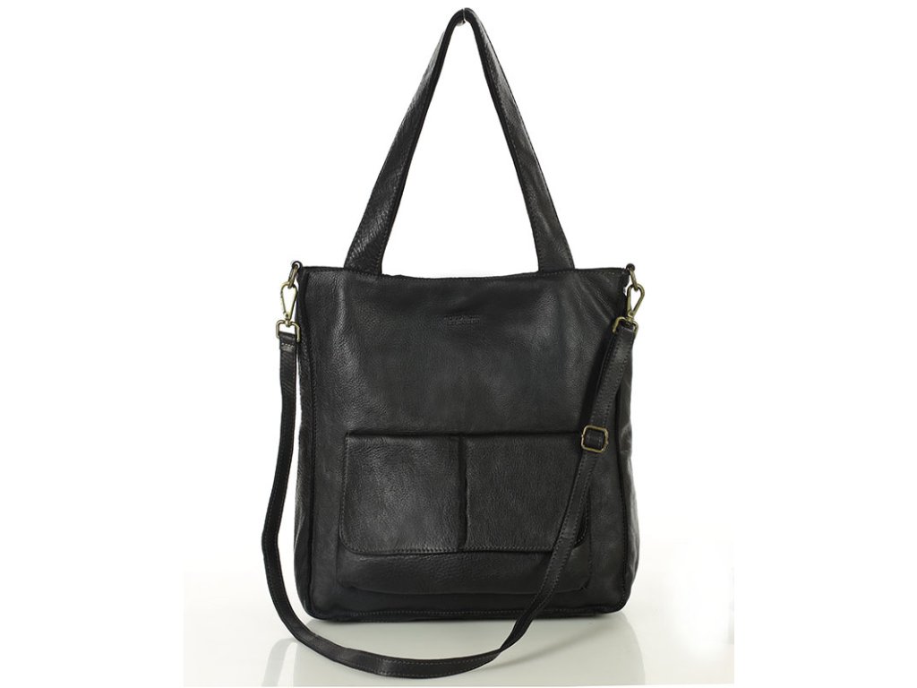 Dámská shopper taška A4 přírodní kůže s kapsami MAZZINI; černá