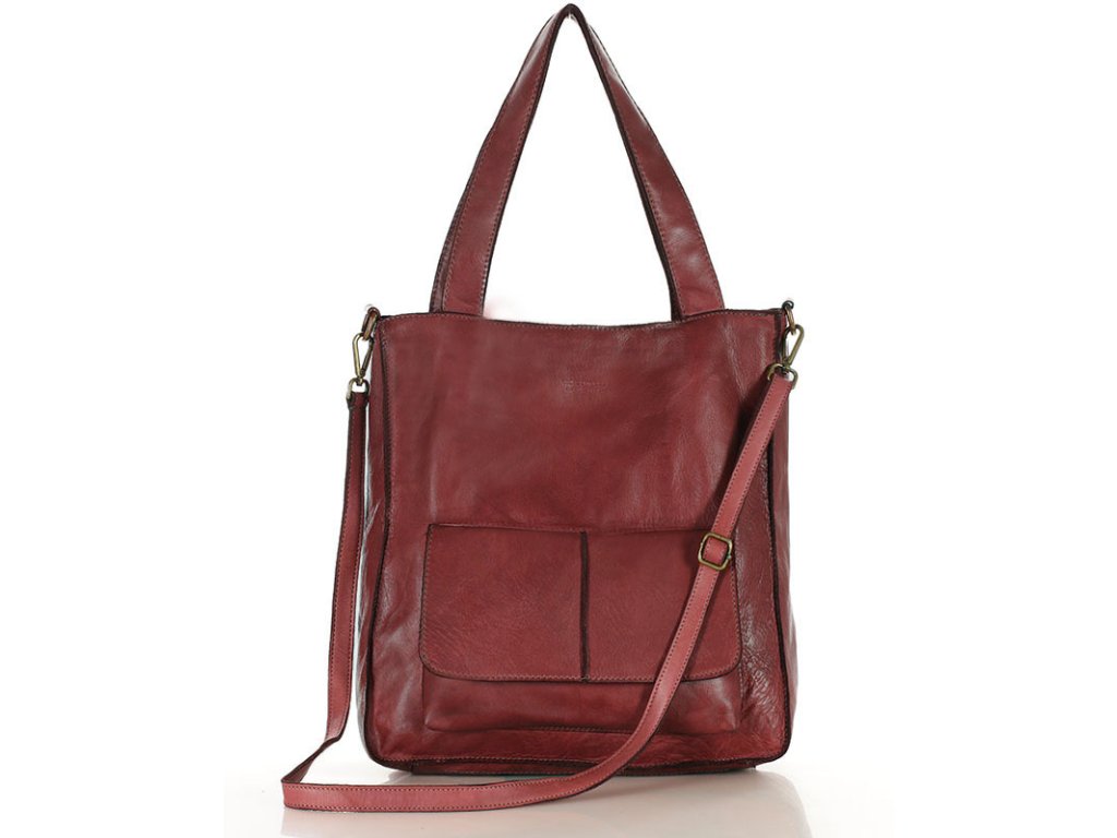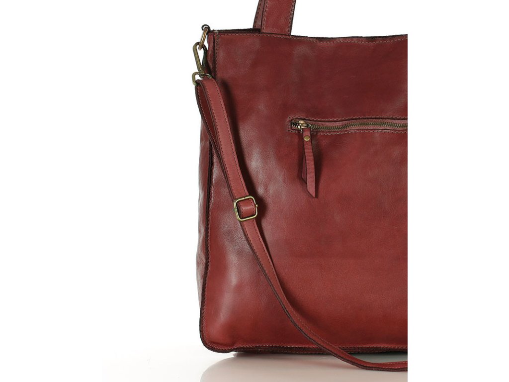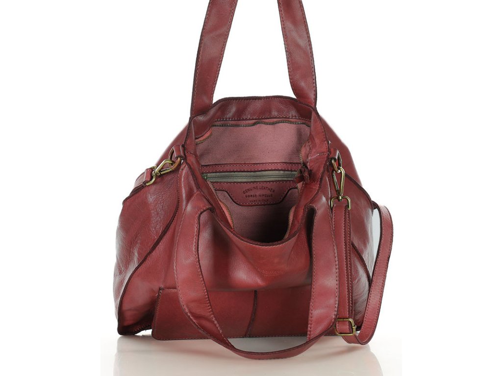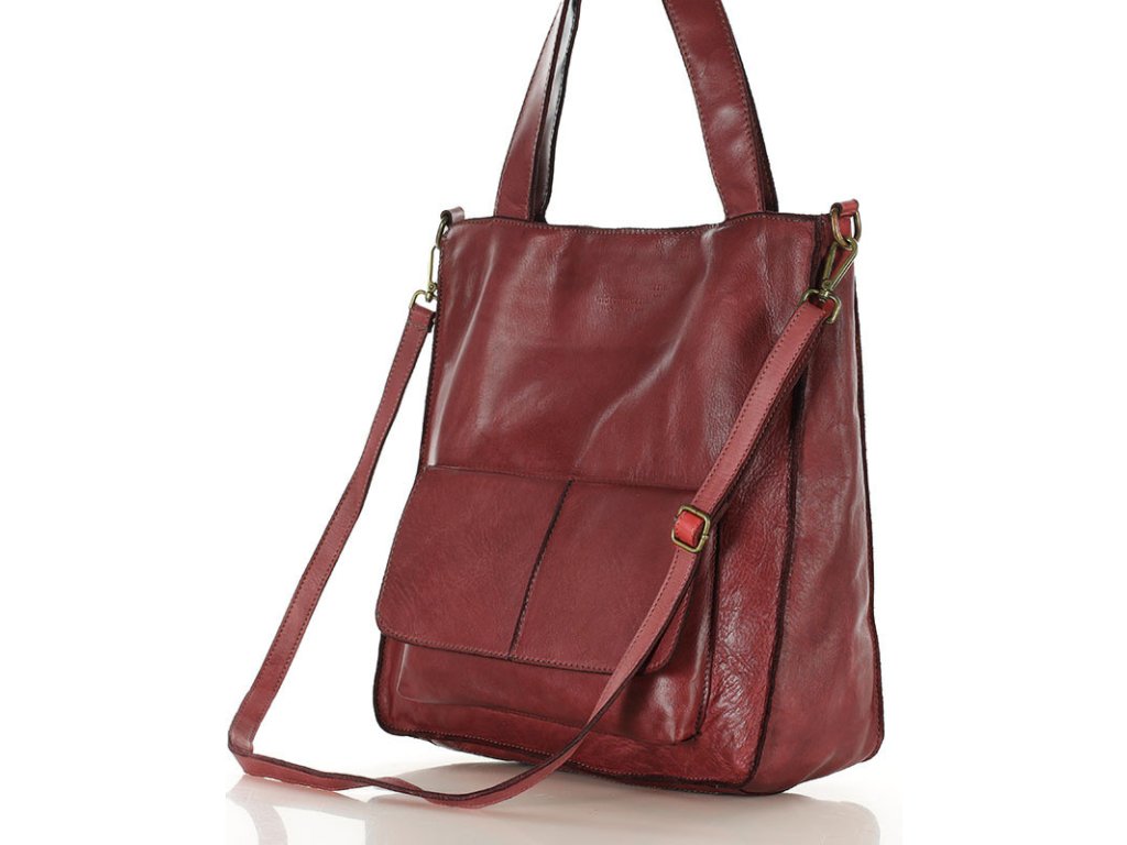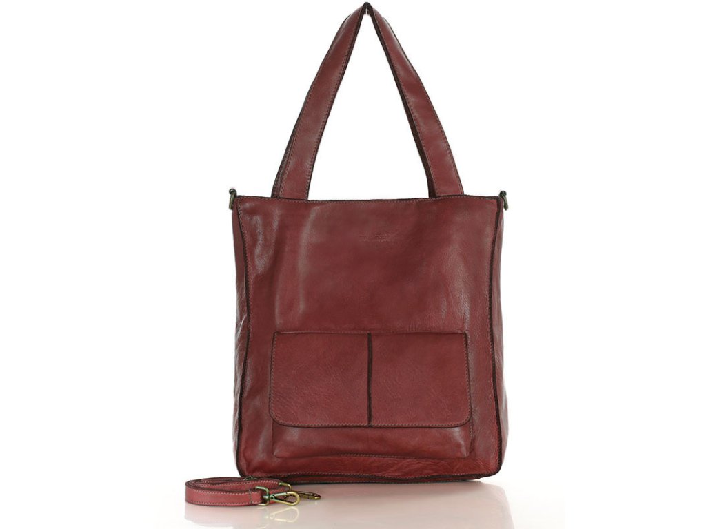 Dámská shopper taška A4 přírodní kůže s kapsami MAZZINI; červená