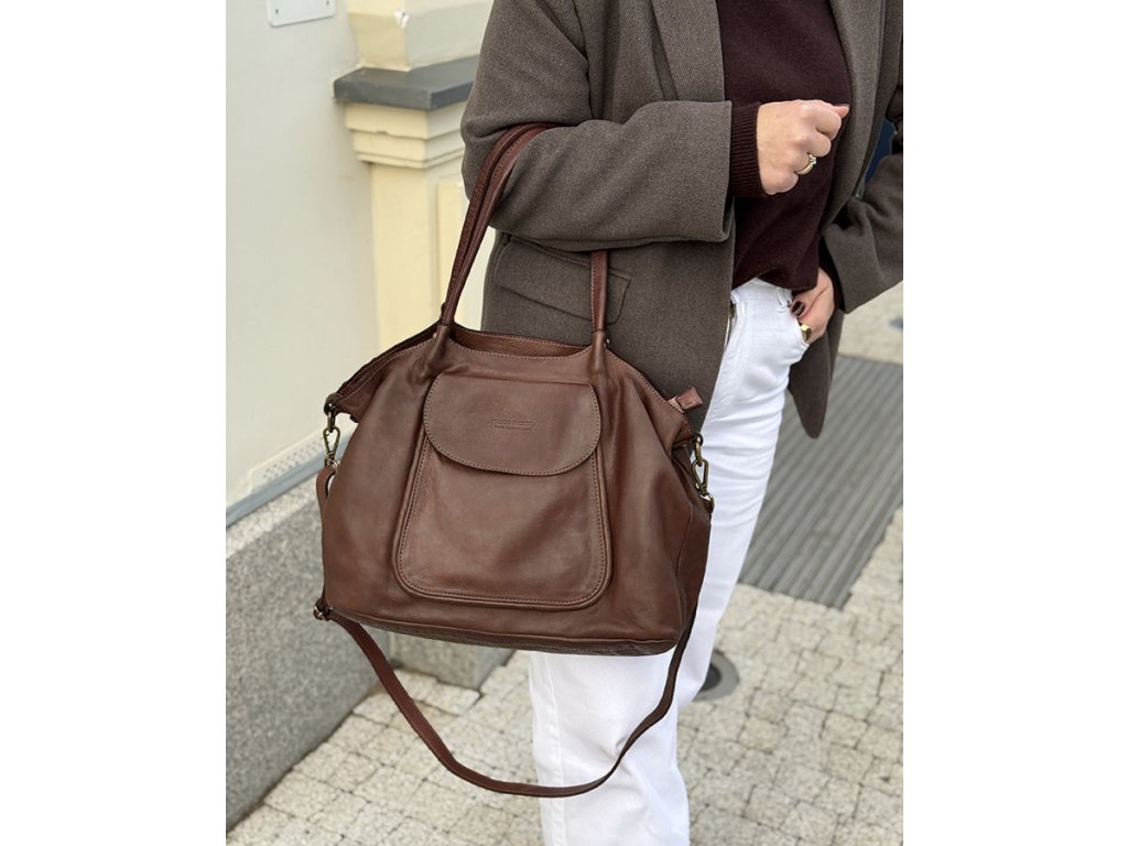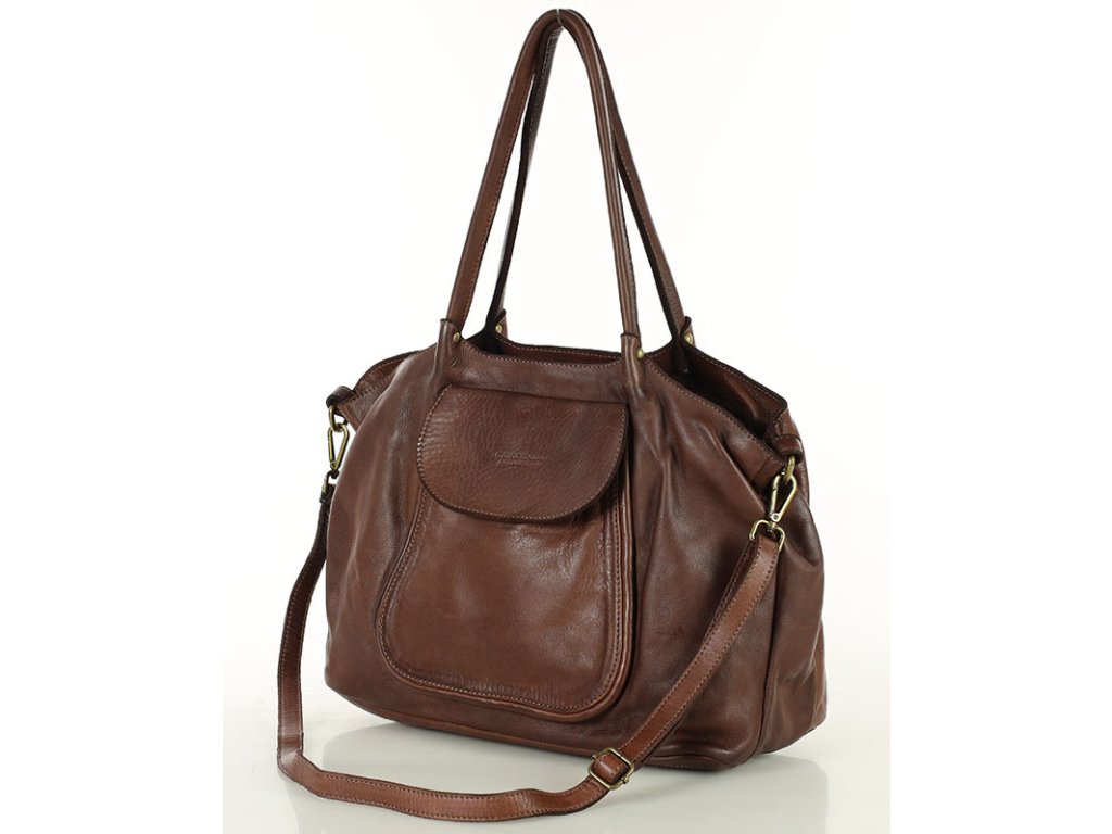Italská kožená nákupní taška MAZZINI ISPIRATO; hnědá