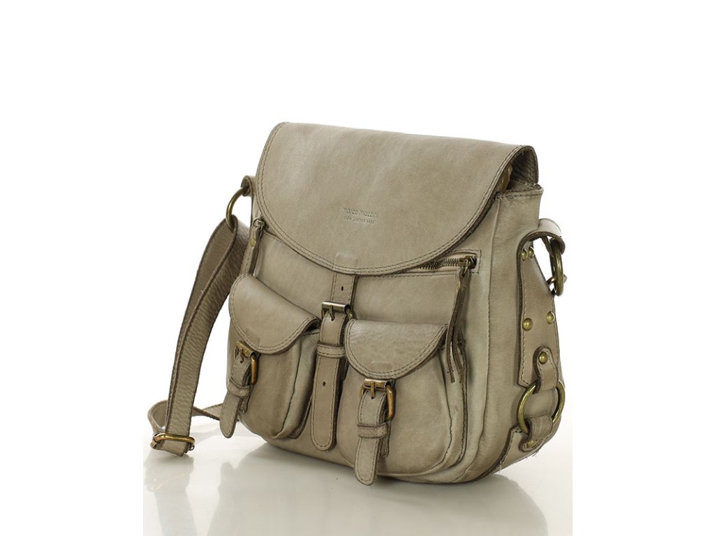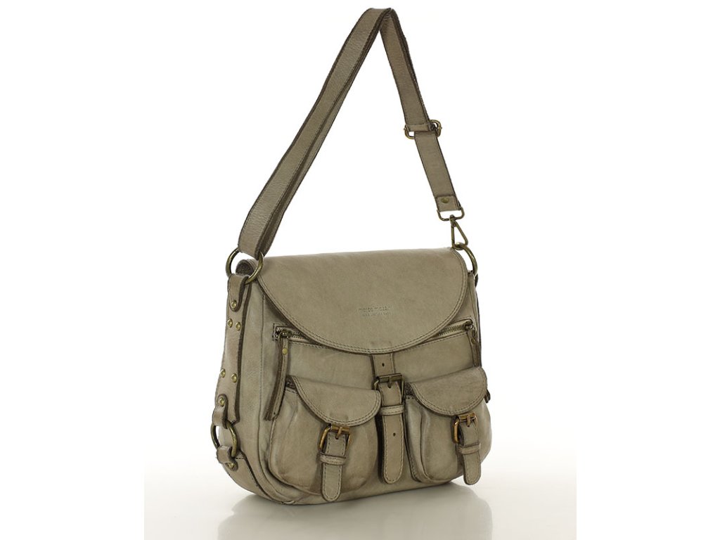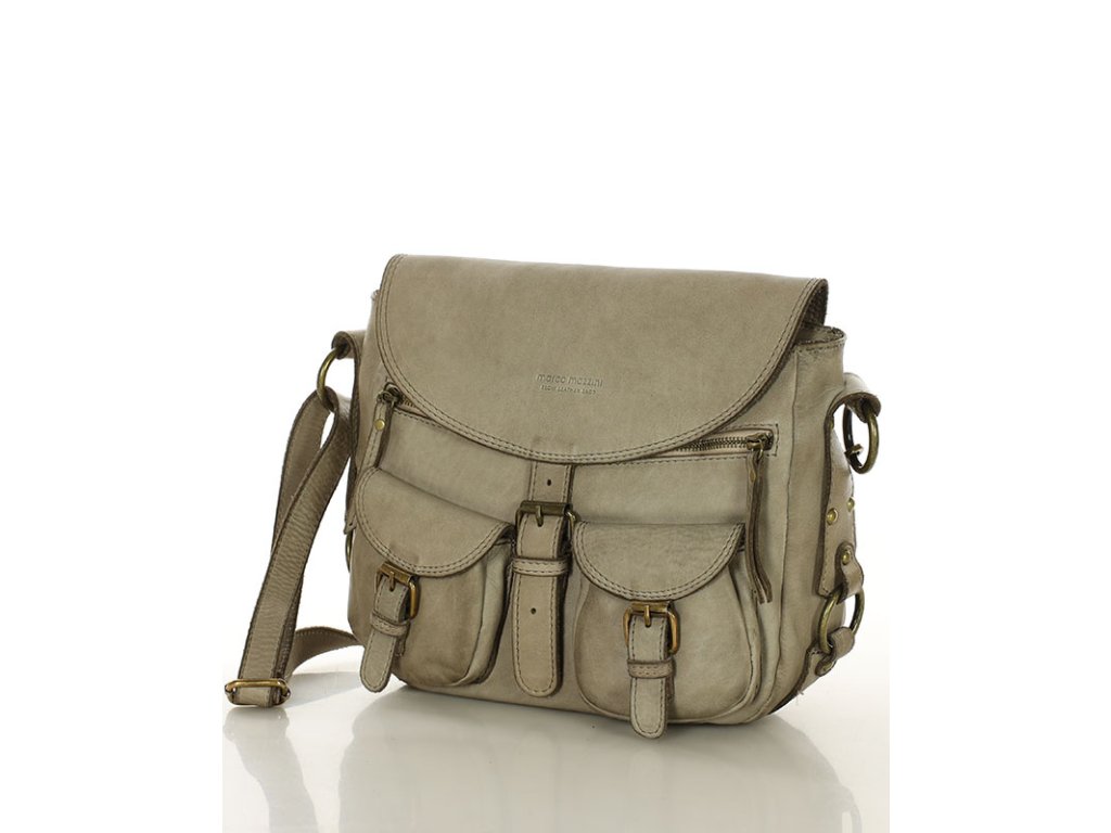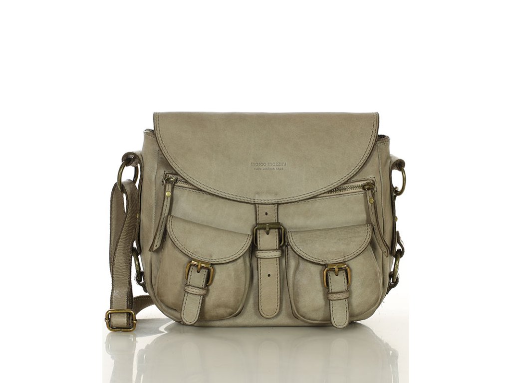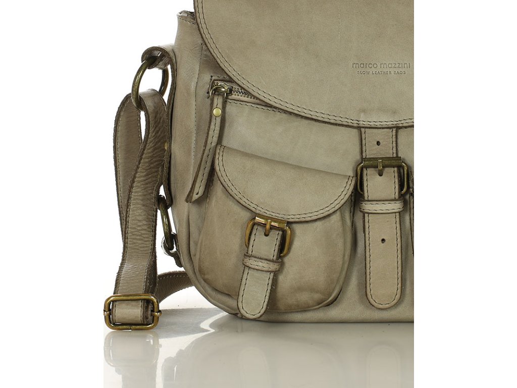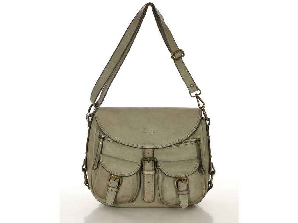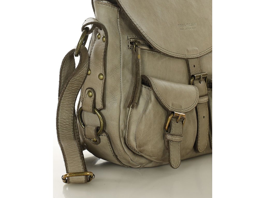 Kožená brašna s kapsami MAZZINI ručně vyrobená; béžová