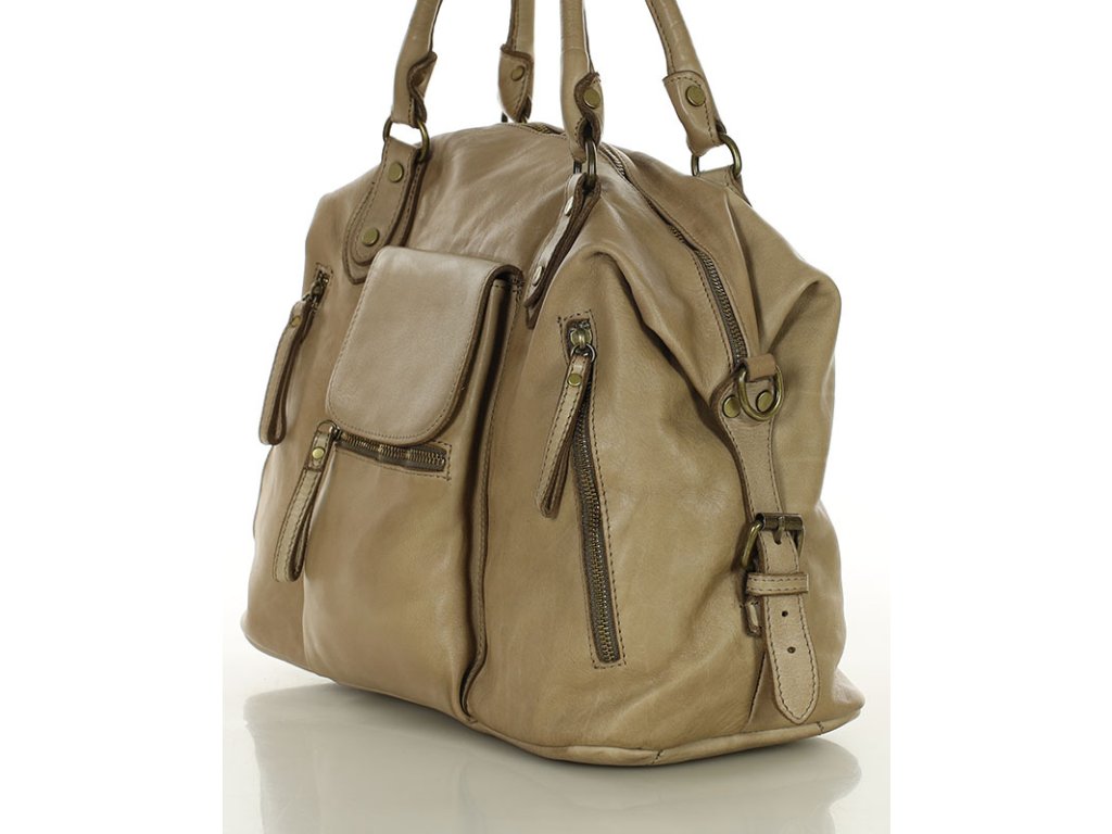 Kožená business taška na víkend MARCO MAZZINI; béžová