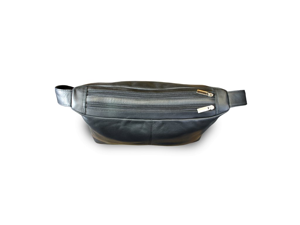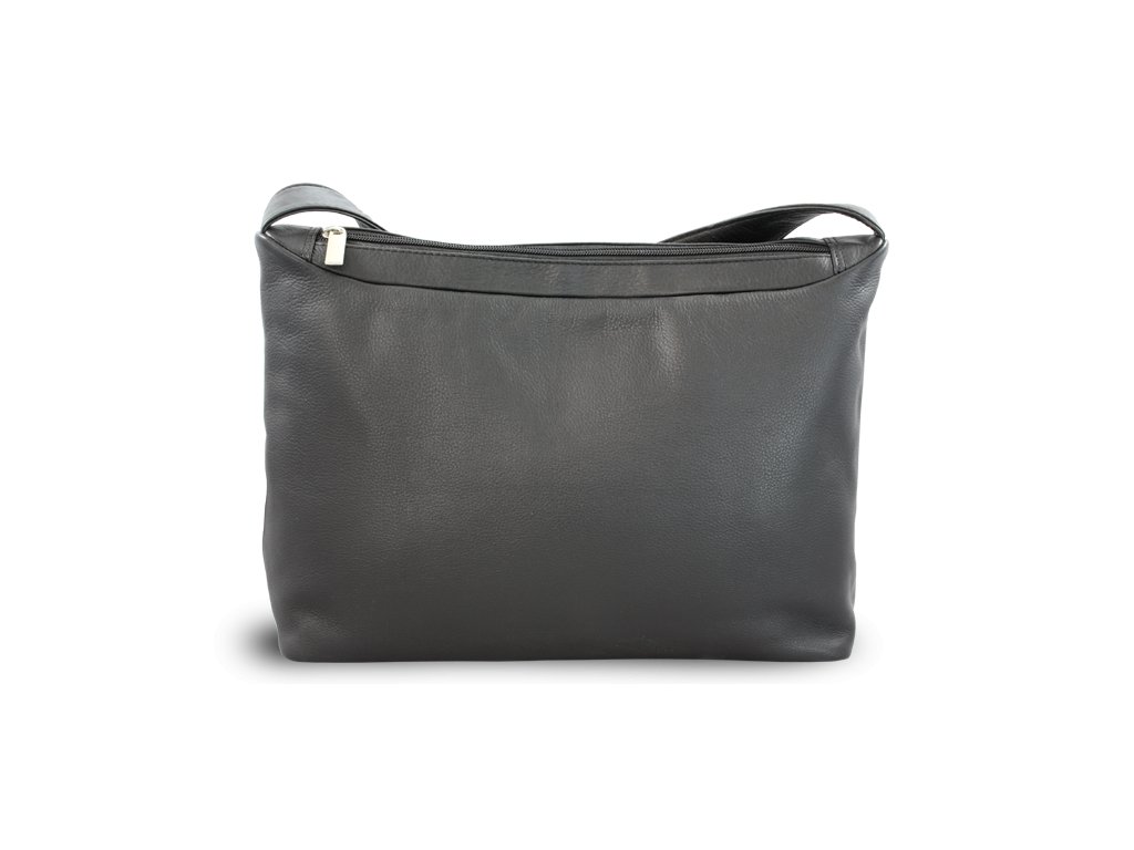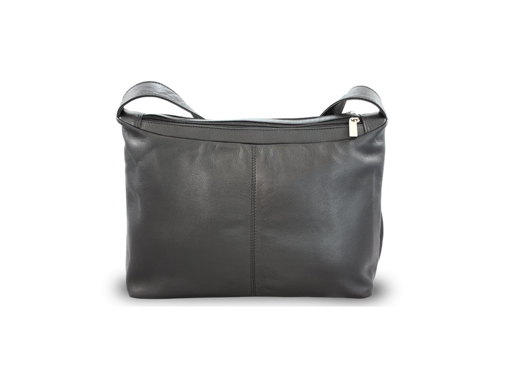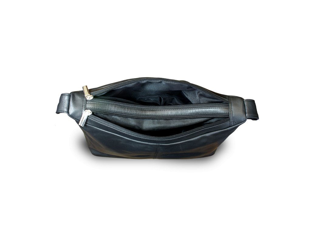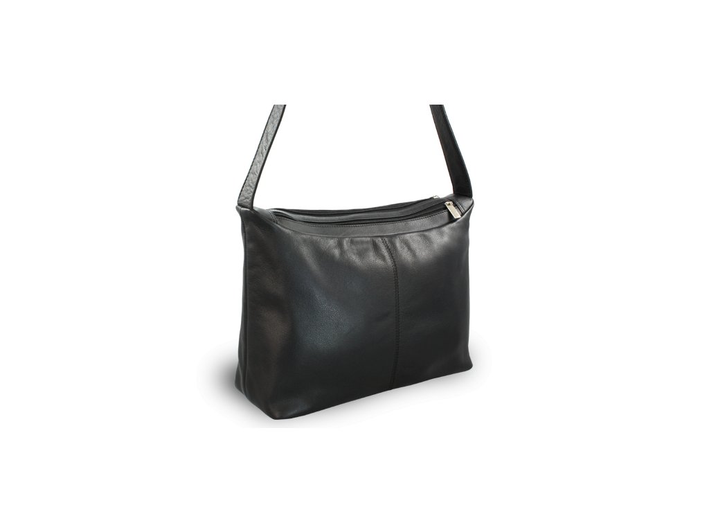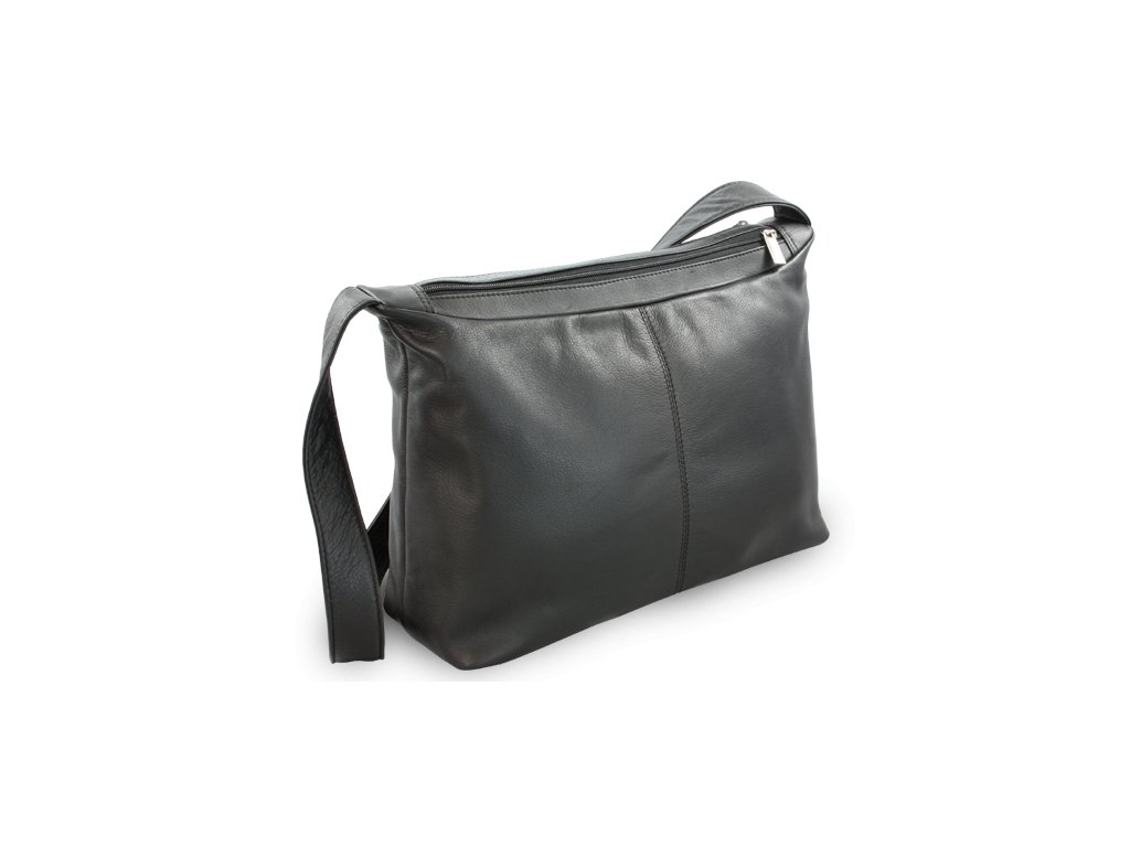 Kožená dvouzipová kabelka s širokým popruhem - česká výroba; černá