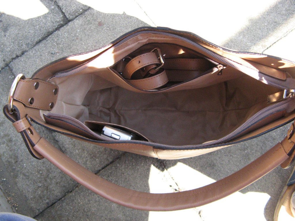 Dlouhý řemen přes rameno: ano, uvnitř kabelky, nastavitelná délka