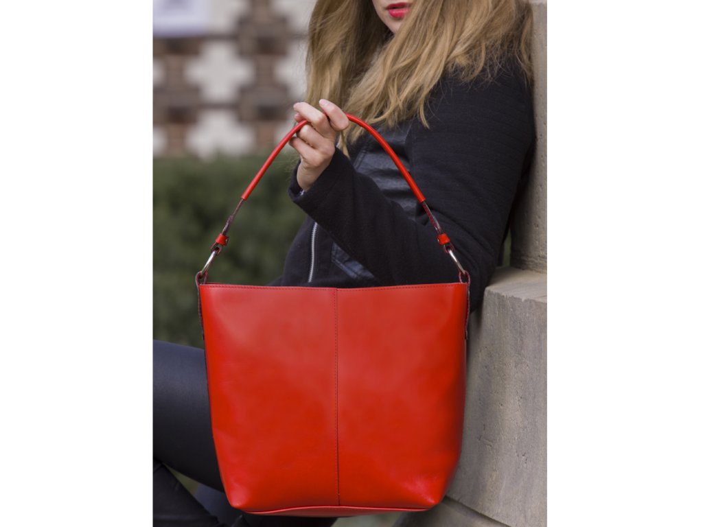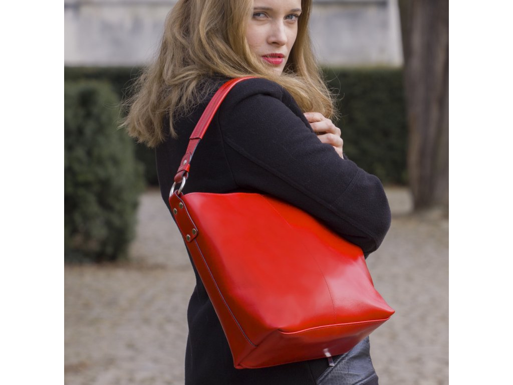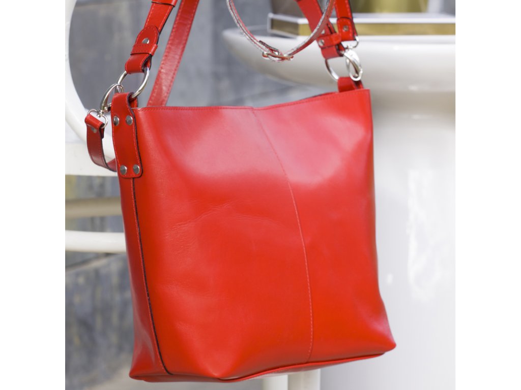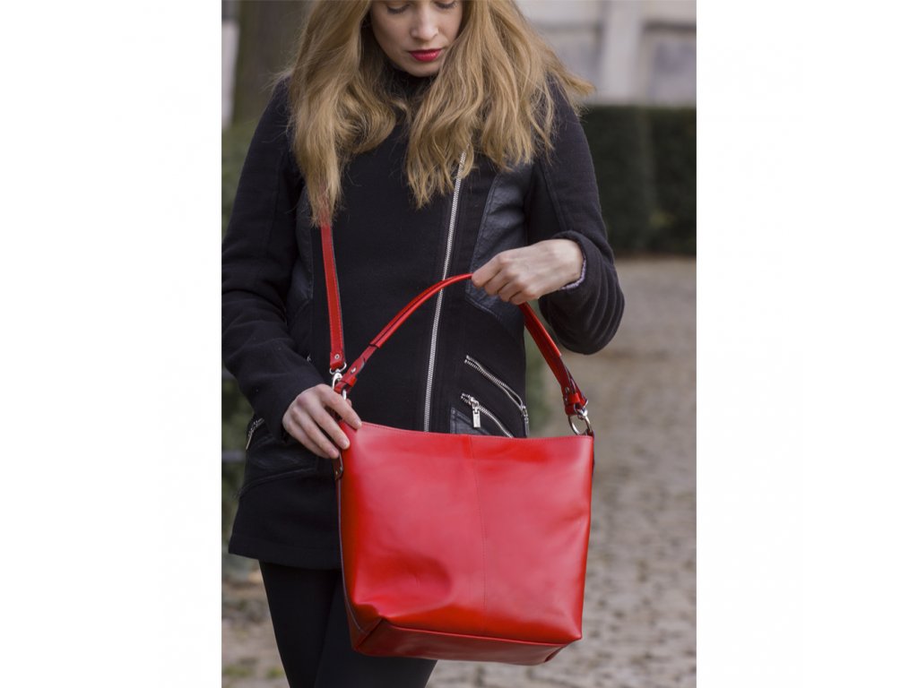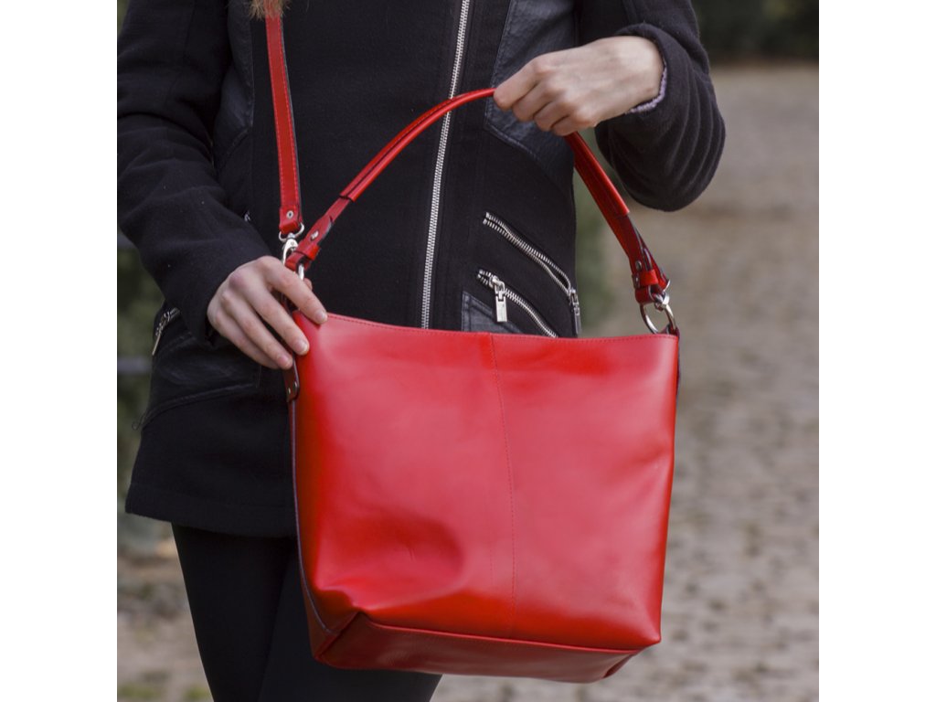 Kožená ručně šitá kabelka LADA - česká výroba; červená