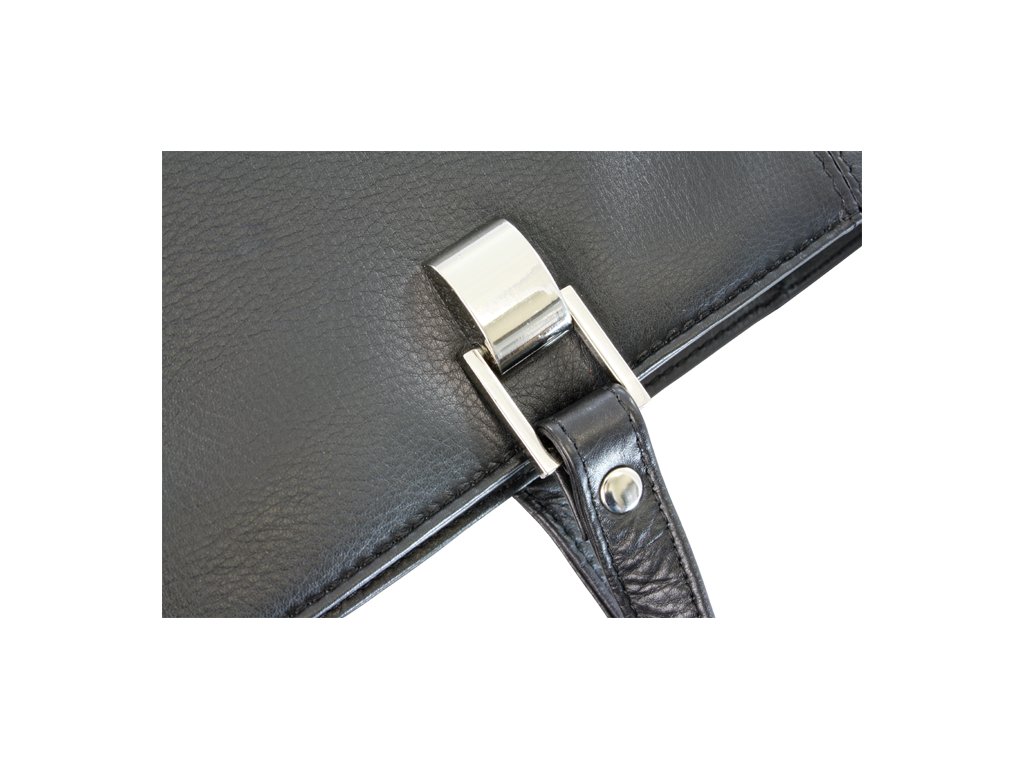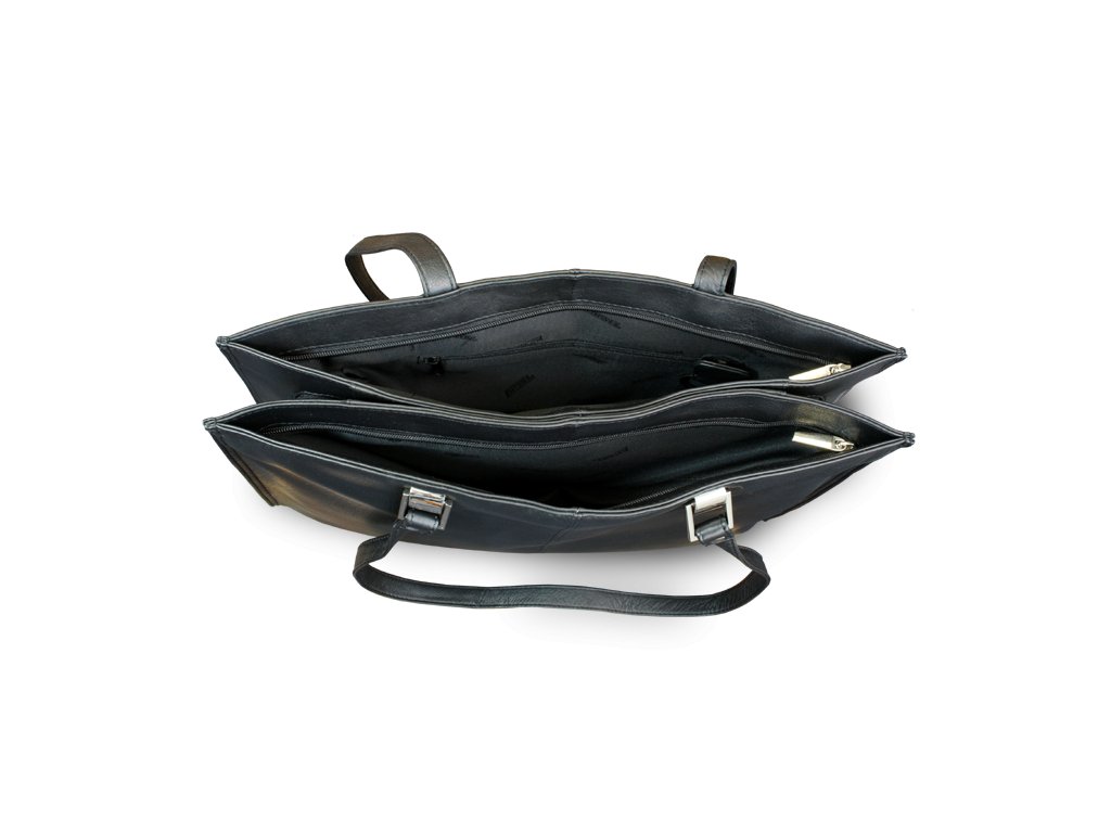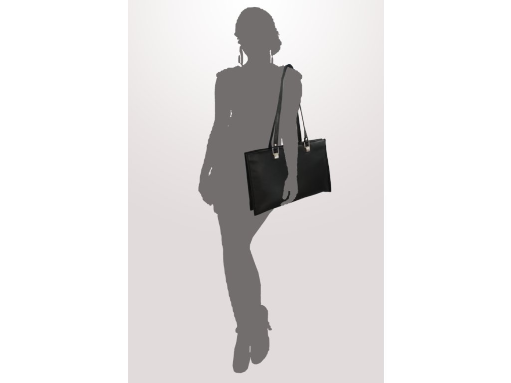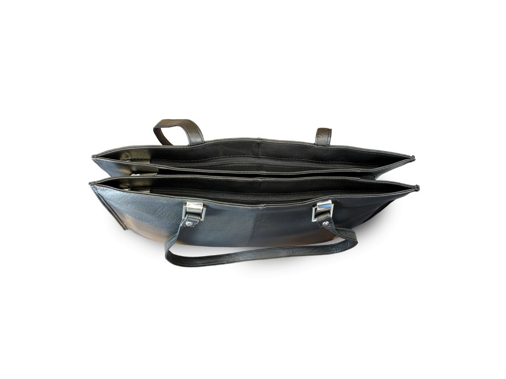 Tři zipové kapsy (dvě z nich velikosti A4), 2 vnitřní zipové kapsy, odepínatelný kroužek na klíče, kapsa pro mobil, místo pro psací potřeby, zrcátko v koženém obalu. Délka popruhu 70 cm.