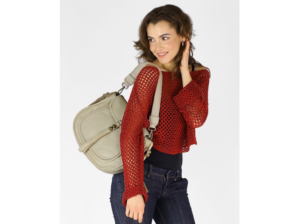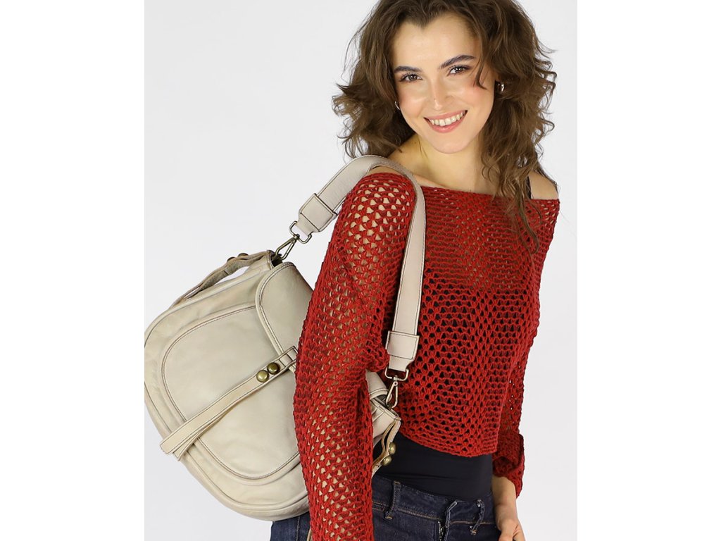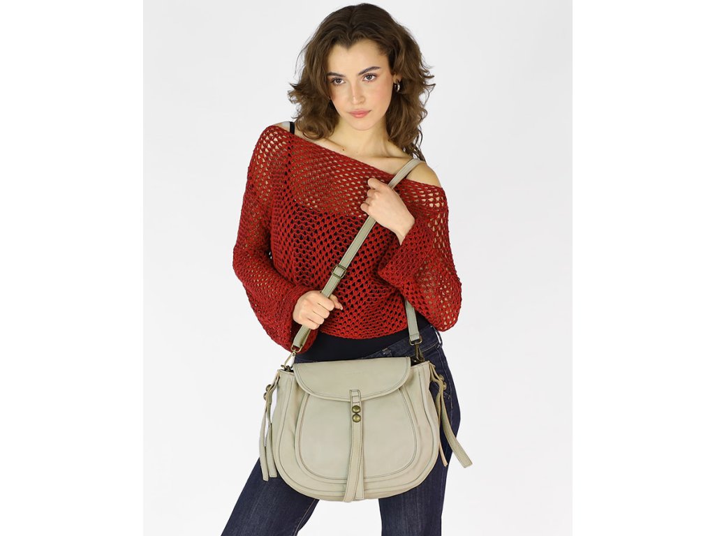 Marco Mazzini Klasická sedlová taška z pravé kůže; béžová