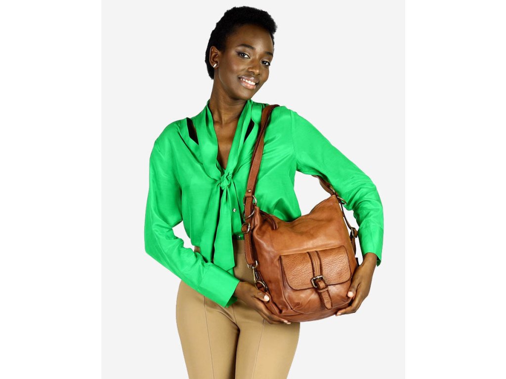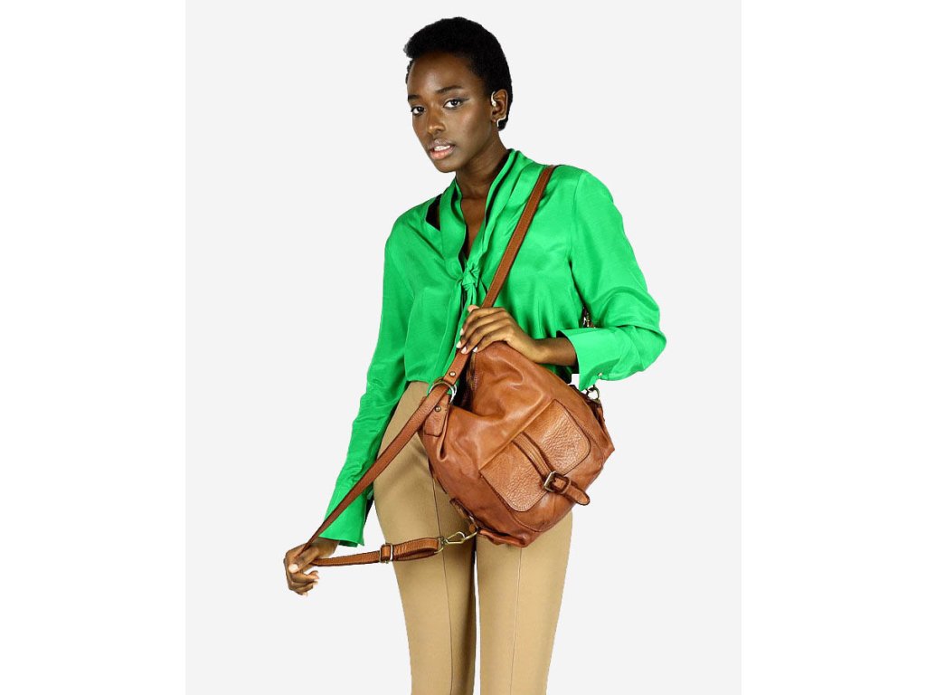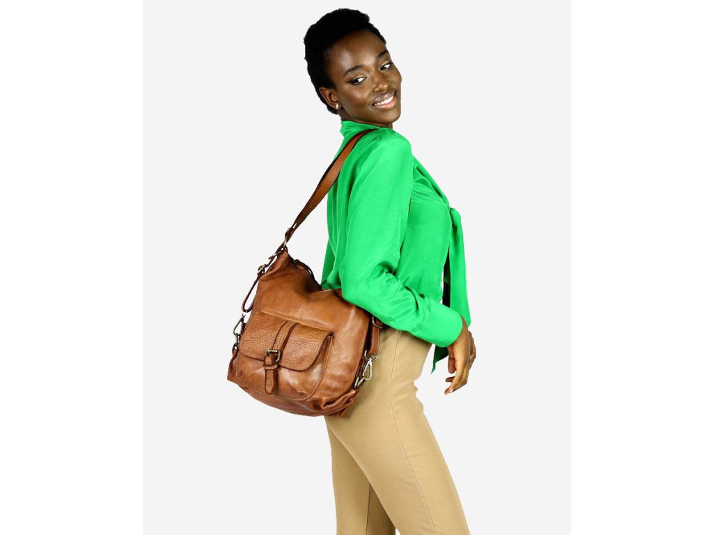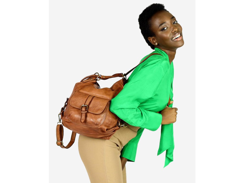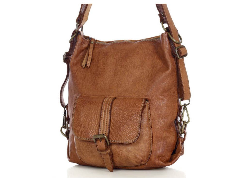 MARCO MAZZINI Kožená kabelka i batoh; velbloud