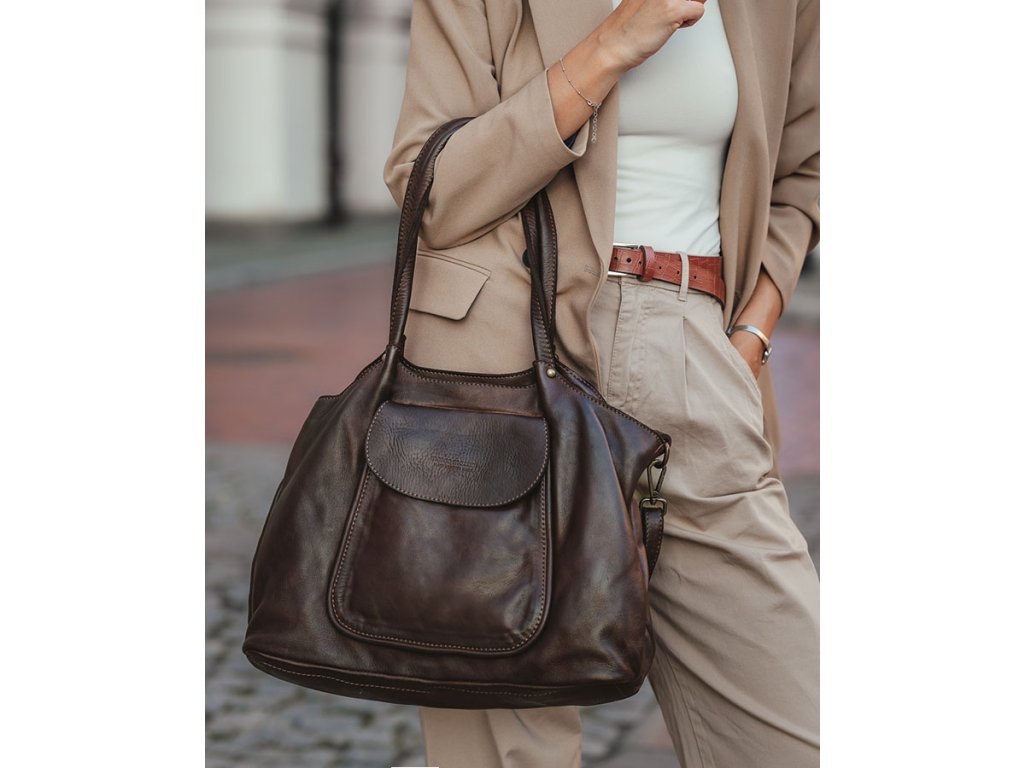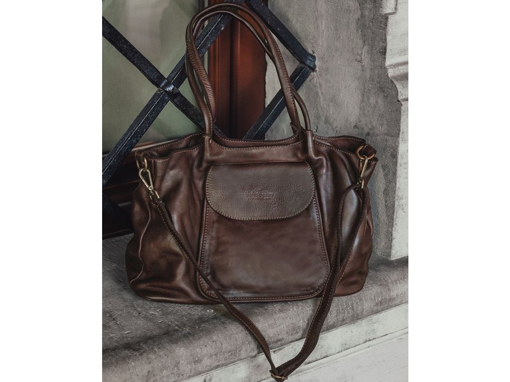 Italská kožená nákupní taška MAZZINI ISPIRATO; hnědá káva