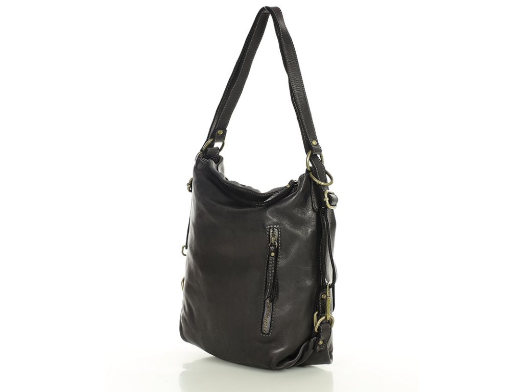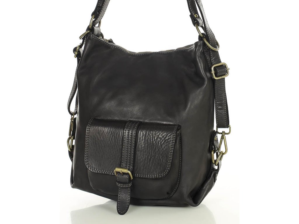 Italská kožená kabelka i batoh MAZZINI; černá