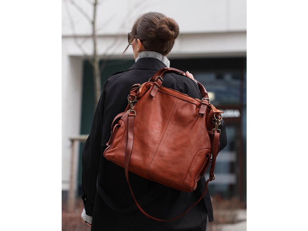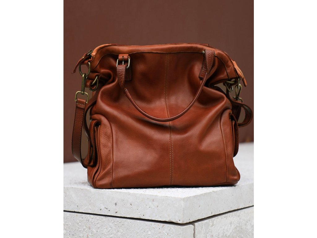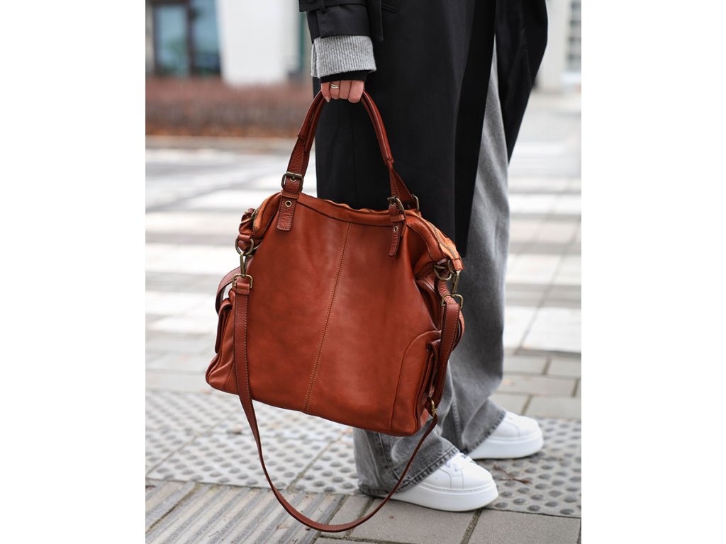Městská kožená taška s nastavitelnou rukojetí MAZZINI ručně vyráběná; velbloud