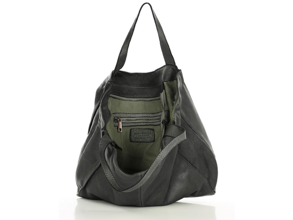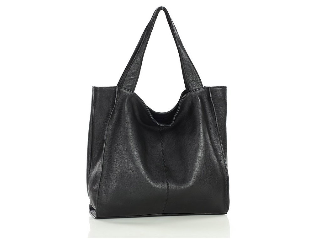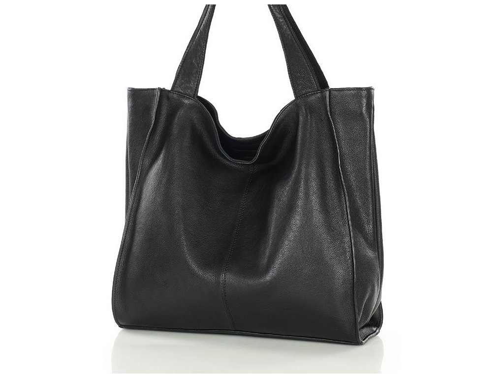 Městská nákupní taška MAZZINI ručně vyrobená z pravé kůže; černá