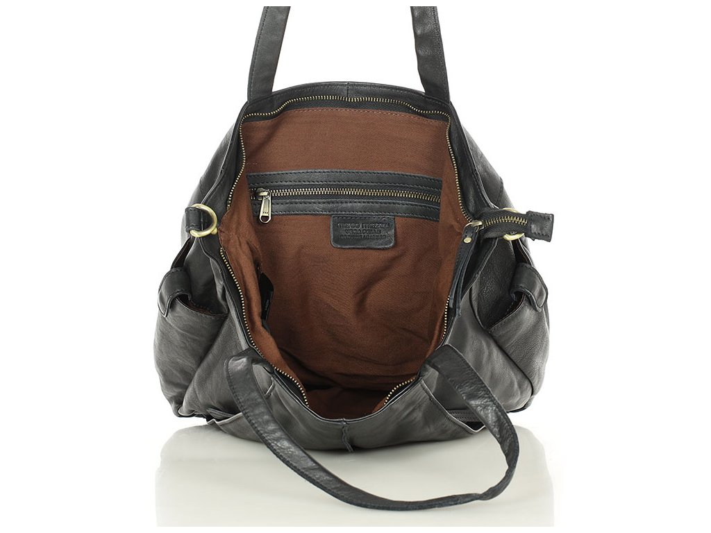 Měkká kožená taška přes rameno MARCO MAZZINI; černá