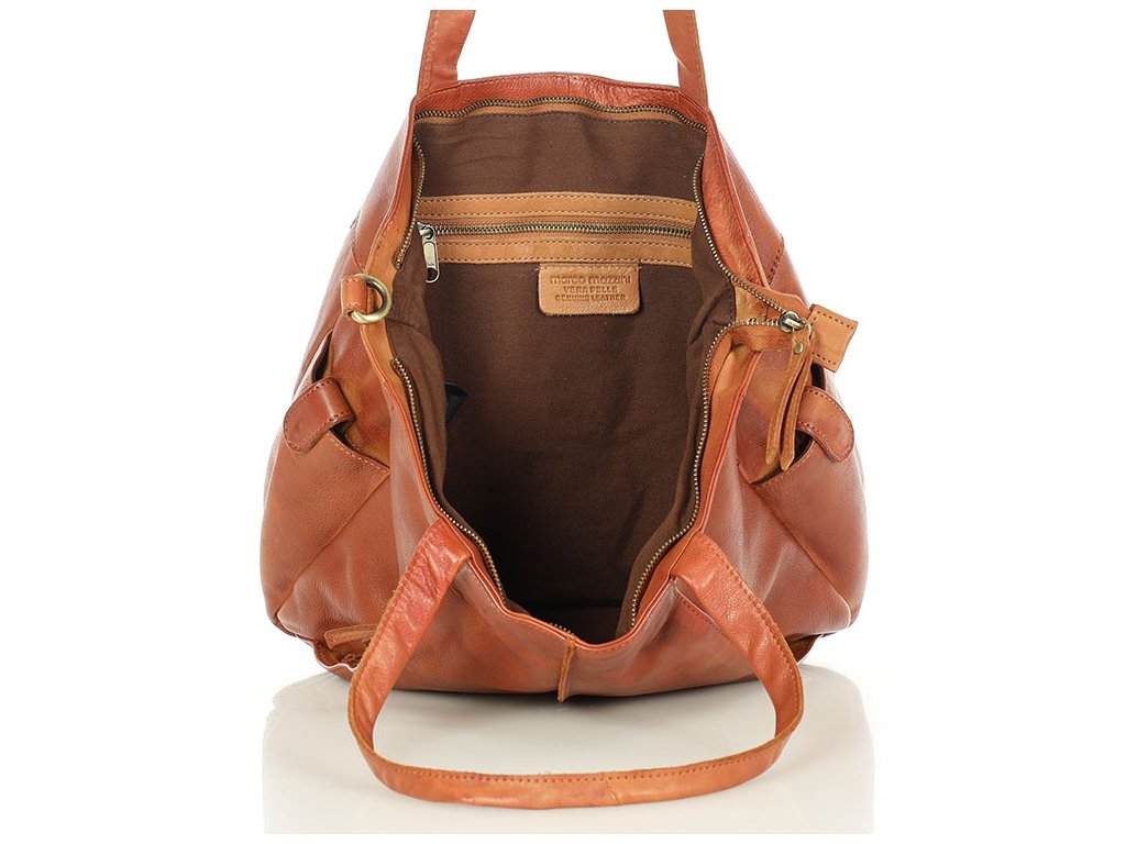 Měkká kožená taška přes rameno MARCO MAZZINI; velbloud