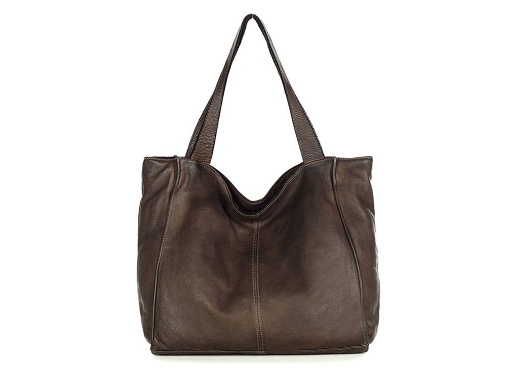 Městská nákupní taška MAZZINI ručně vyrobená z pravé kůže; hnědá