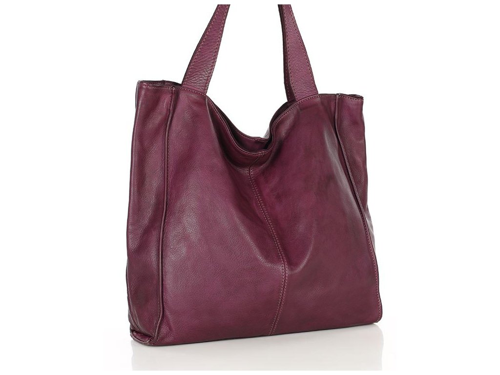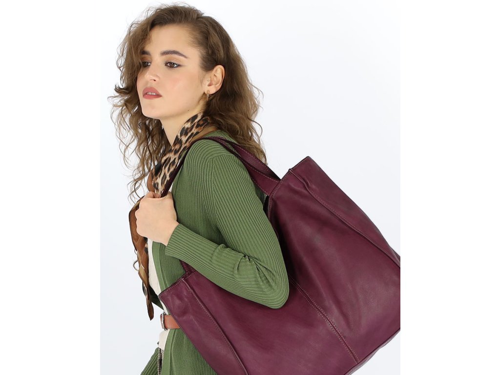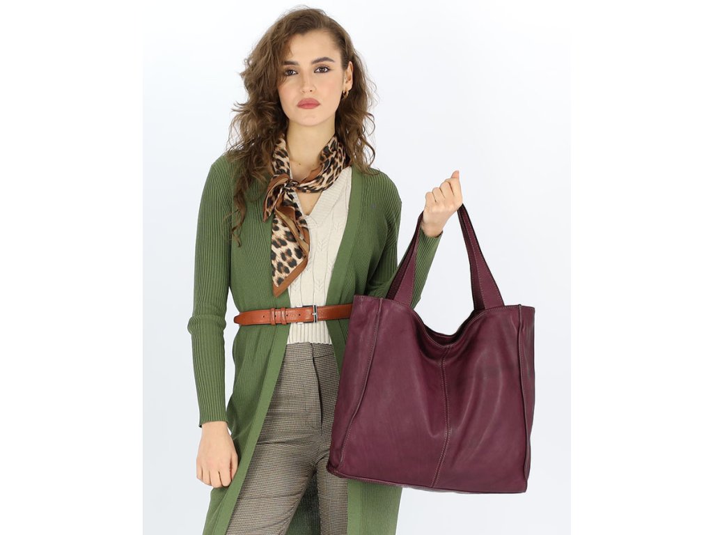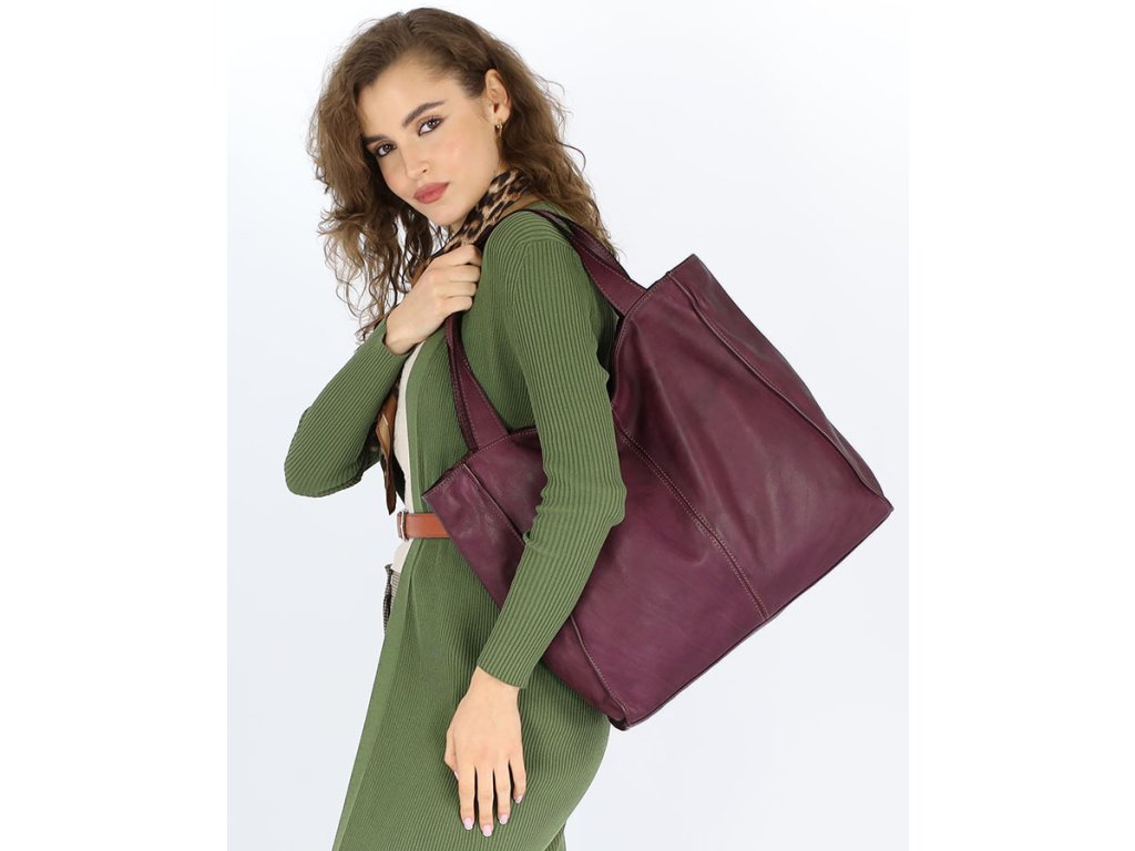 Městská nákupní taška MAZZINI ručně vyrobená z pravé kůže; vínová