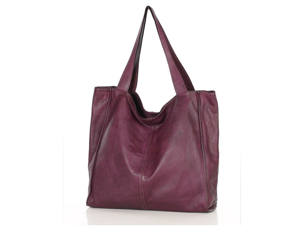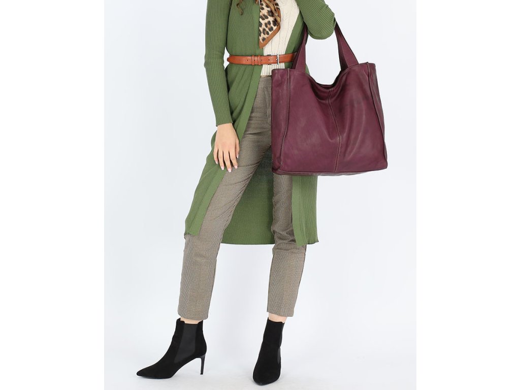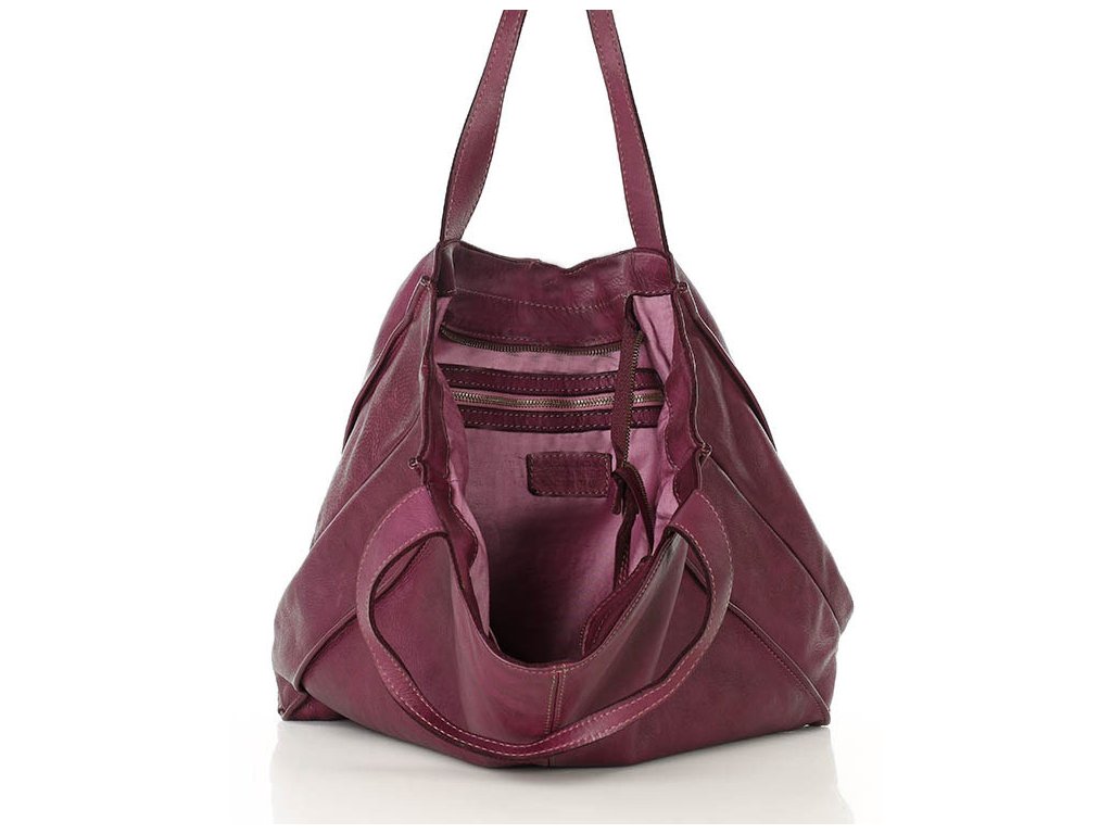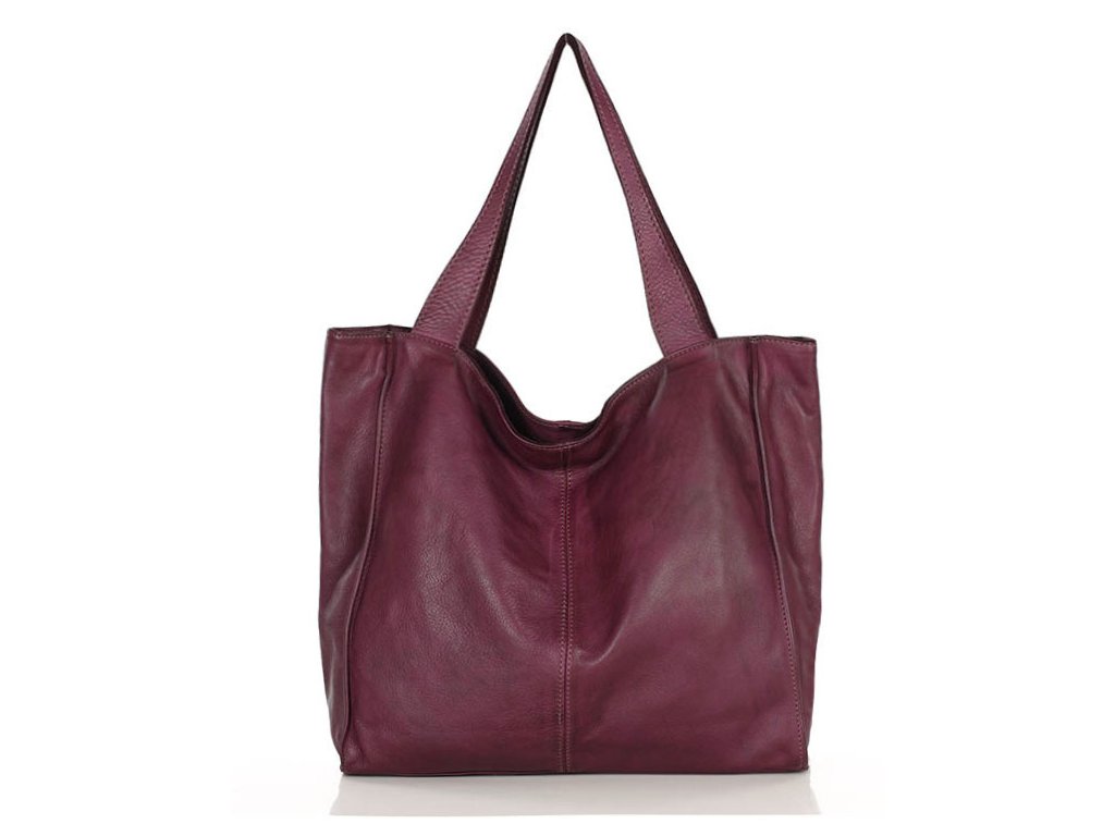 Městská nákupní taška MAZZINI ručně vyrobená z pravé kůže; vínová